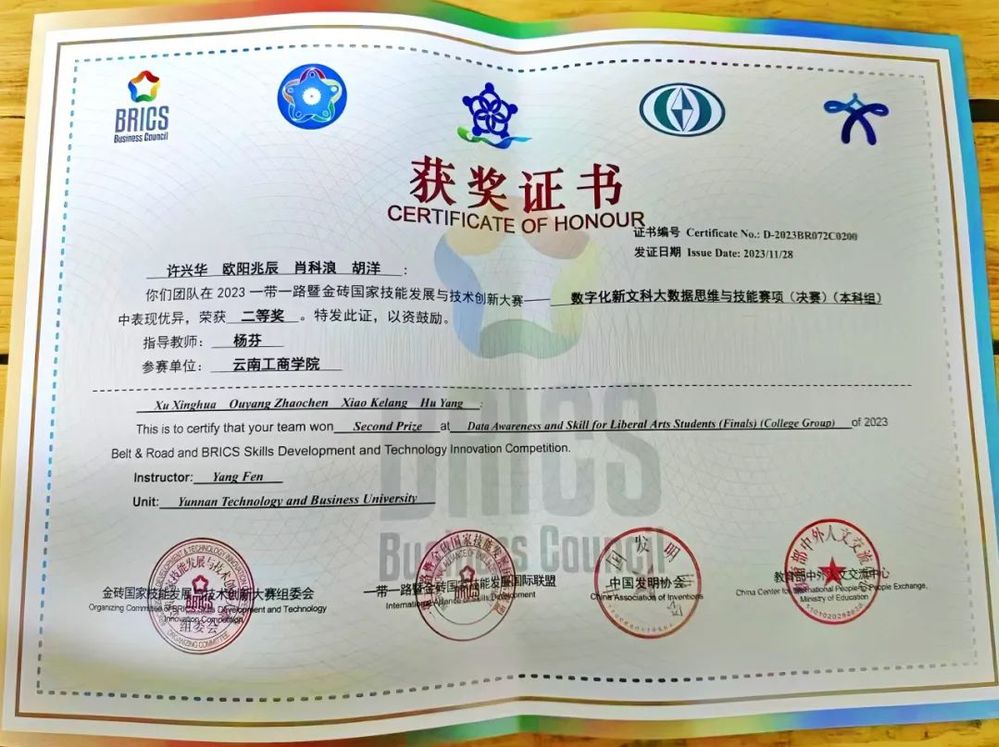 近日,taptap点点官方网站经济与管理学院师生在2023第七届一带一路暨金砖国家技能发展与技术创新大赛——数字化新文科大数据思维与技能竞赛国内总决赛中斩获多个奖项,其中,学生组本科赛道获得国赛二等奖2项,教师组获得国赛二等奖1项、优秀奖1项。