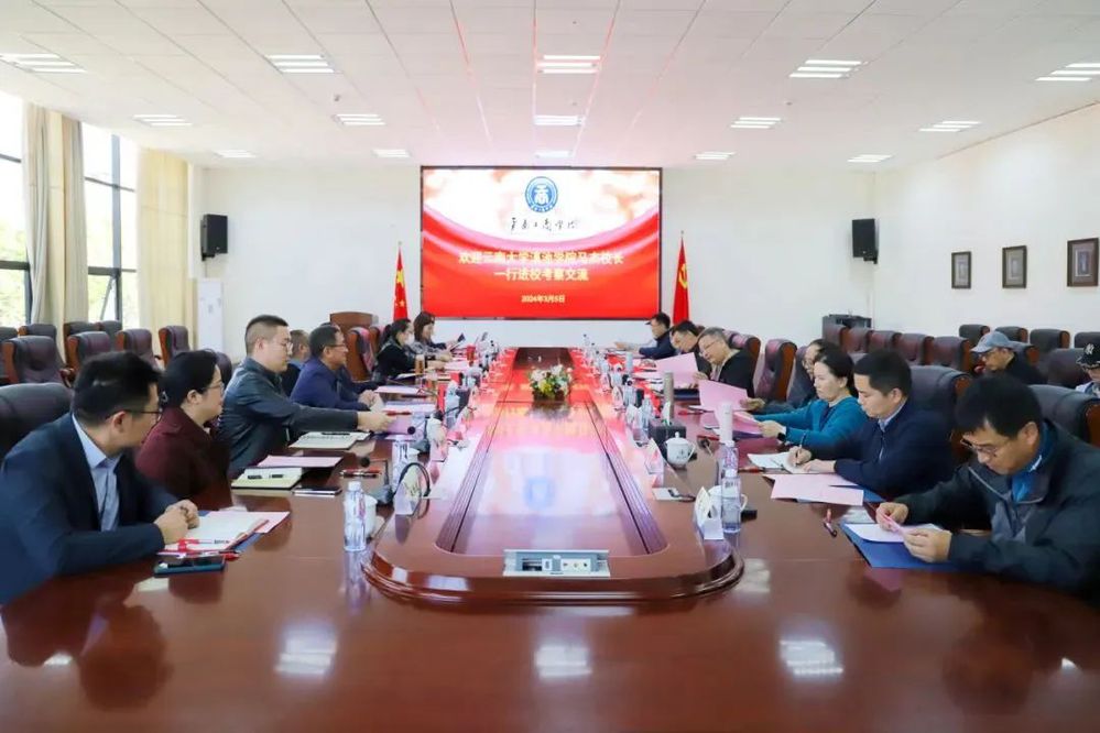 3月5日,滇池学院校长马杰带领相关部门负责人来校调研交流,进一步深化双方交流合作。学校执行董事长姬其佐、校长蒋永文、常务副校长周刚、总督学陶国胜及相关部门负责人陪同调研座谈。