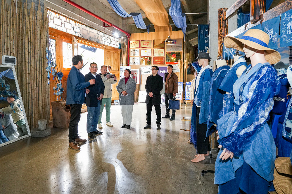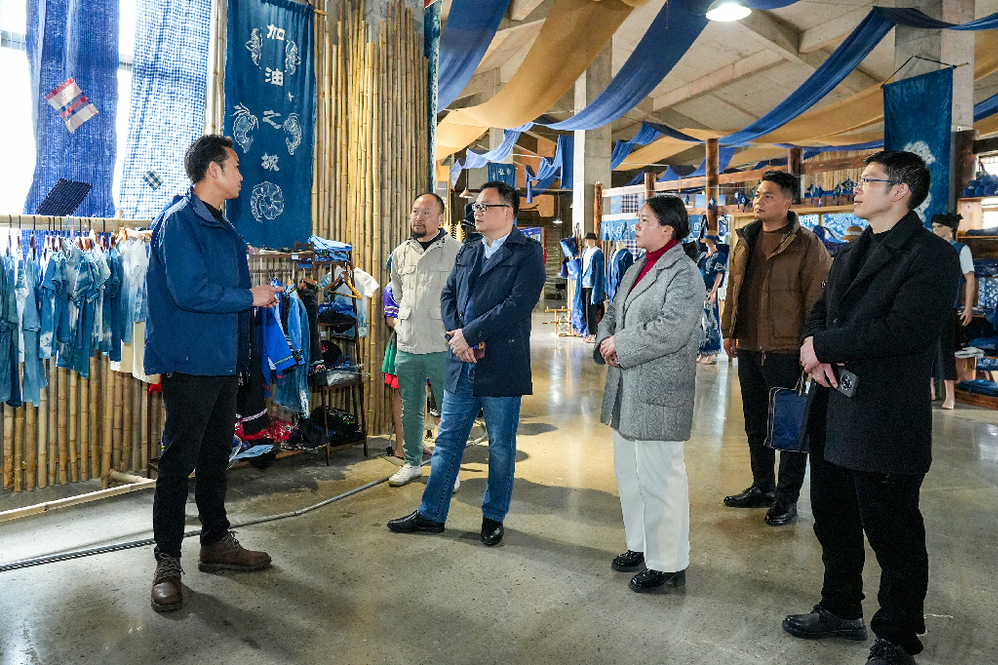 蓝布谣文旅产业发展有限公司法人代表韦光芬对taptap点点官方网站一行的到来表示热烈欢迎,并向参观人员介绍公司蜡染产品、工艺及所获荣誉等情况。