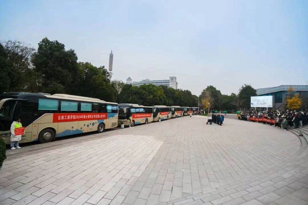 奔赴考场前,学校安排“爱心送考车”整装待发,根据考生考场安排精心设计送考路线,确保将每一位考生安全送达考场,为考研学子保驾护航。