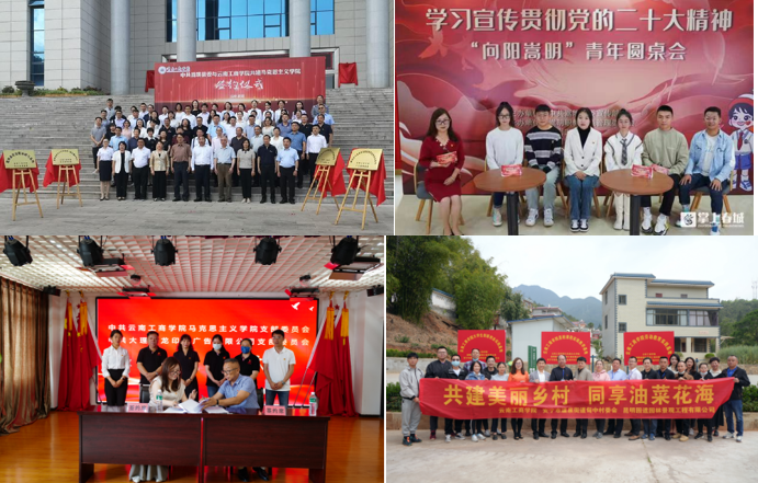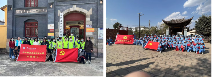 我校2022年7月与中共嵩明县委共建马克思主义学院,积极助力嵩明县党的意识形态建设、宣传思想文化发展繁荣、干部队伍思想政治教育培训等,建成了嵩明县马克思主义理论研究宣传培训基地、嵩明县思想政治教育人才培养基地、嵩明县大中小学思政课一体化建设中心以及延安精神研习基地。举办“宣传贯彻党的二十大精神”青年圆桌论坛、“桂梅老师”话剧进校园、大中小学思想政治教育一体化建设集体备课、“延安精神五进十讲”等活动,打造“向阳嵩明”文化IP思政教育品牌。在党委的领导下支部先后与云南日报摄影部党支部、大理天龙印务广告有限公司党支部等基层党组织开展形式多样的共建活动。
