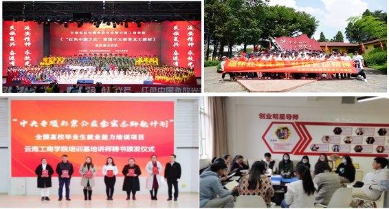 五是让思政课“燃”起来。通过知识竞赛、探馆打卡、活动展演等多种形式,用青年学习喜闻乐见的方式让思政课与学生心灵同频共振。开展庆祝建党100周年“舞动的思政课”实践教学展演、举办“真爱没有边界·传承燃灯精神——话剧《桂梅老师》走进云工商”等活动触动云工商万千学子,举办《“红色中国之恋”爱国主义教育本土教材》宣讲演出活动,参与师生共计1000余人,成为“延安精神”落地传承领航校。