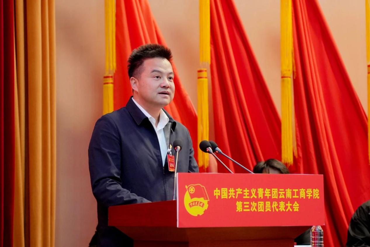 段胜忠代表共青团云南省委向大会的召开表示热烈祝贺,对我校近年来各级团组织的工作成果表示肯定。希望我校各级团组织继续以习近平新时代中国特色社会主义思想为指导,深入学习贯彻党的二十大精神和习近平总书记关于青年工作的重要思想,牢牢把握“三个根本性问题”,聚焦主责主业、深化改革攻坚、全面从严治团,创新开展团学工作,团结凝聚广大团员和青年学生在助力云南省“3815”战略发展目标、推动云南高质量跨越式发展新征程中建功新时代、展现新作为、谱写新篇章。