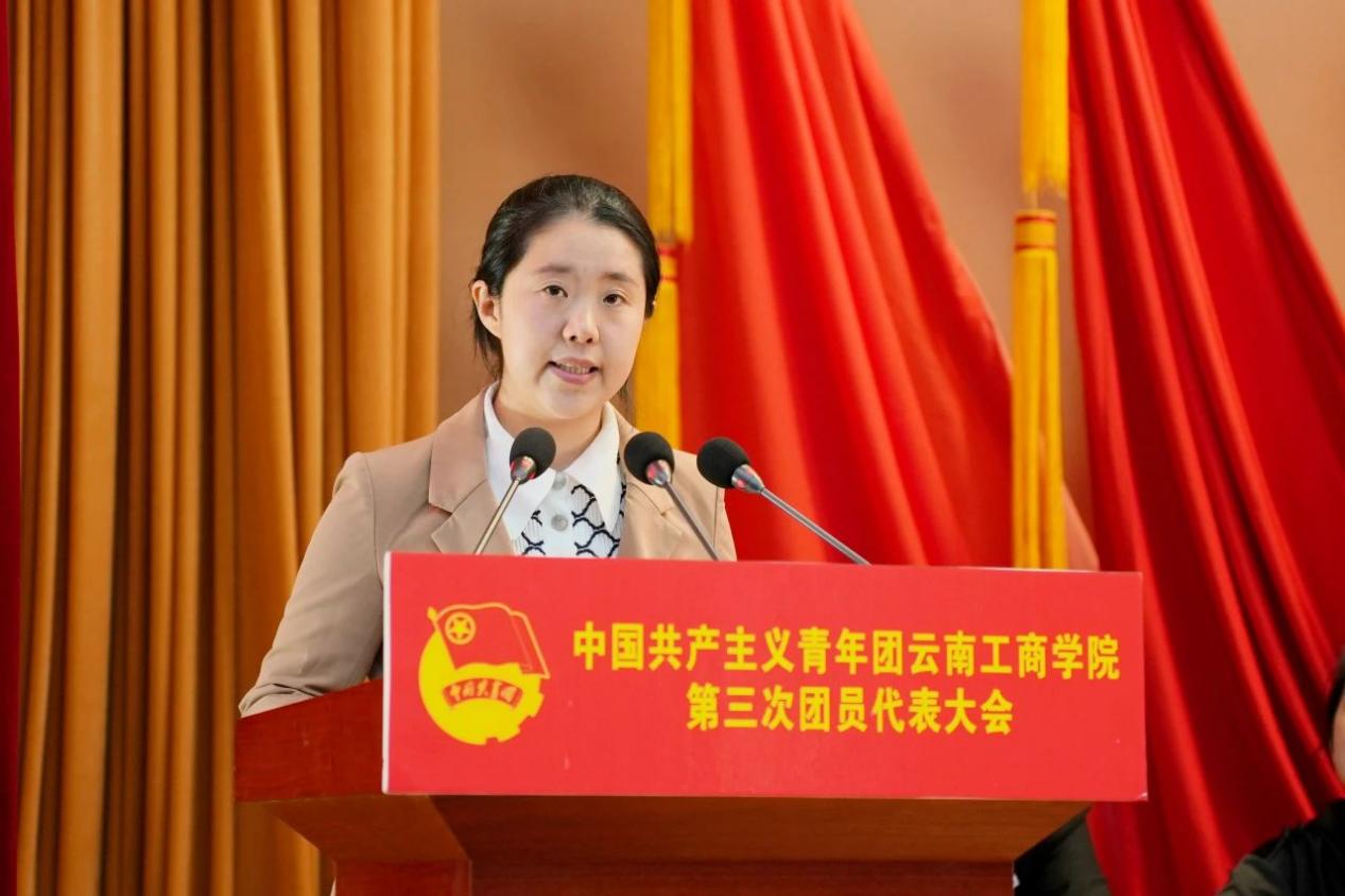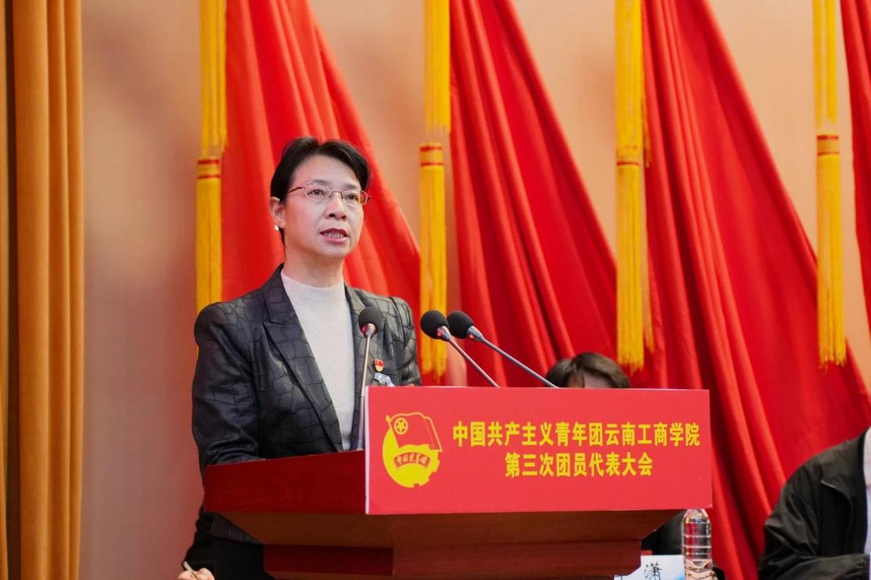 李国琼代表学校党委对大会的召开表示热烈祝贺,她表示,五年来,学校各级团组织始终坚持育人根本,服务青年成长成才,坚持从严治团,推动团学组织改革落地有声,将青年工作融入学校“三全育人”和“大思政”工作格局,在巩固党的青年群众基础、引领青年建功立业、服务青年成长成才、加强团的自身建设等方面做出了突出成绩,得到上级的充分肯定和认可。希望各级团组织继续坚定理想信念,强化理论武装;锤炼能力本领,勇担时代重任;加强自身建设,推动工作创新,为区域经济发展贡献更多力量。