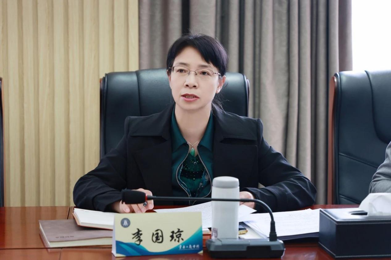 李国琼结合学习内容提出四个方面的要求:一要提高政治站位,全面落实两会精神;二要深入学习领会,全面把握新质生产力的科学内涵;三要强化办学宗旨,全面引导学生立志报国;四要完善工作机制,全面加强党史学习教育。