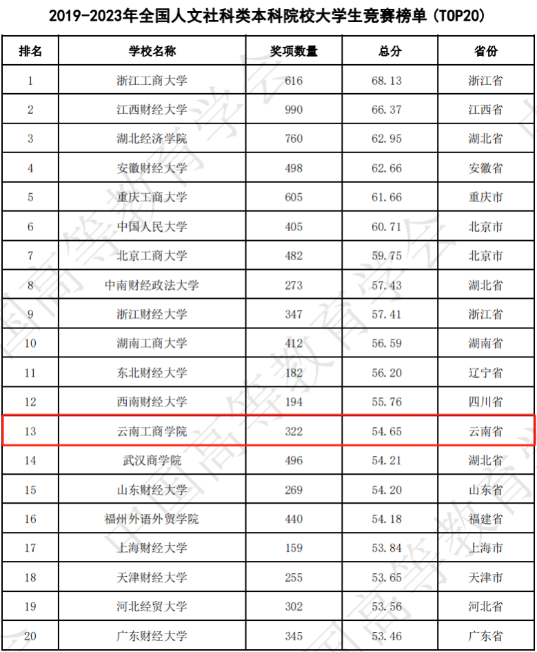 2019-2023年全国人文社科类本科院校大学生竞赛榜单(截图)