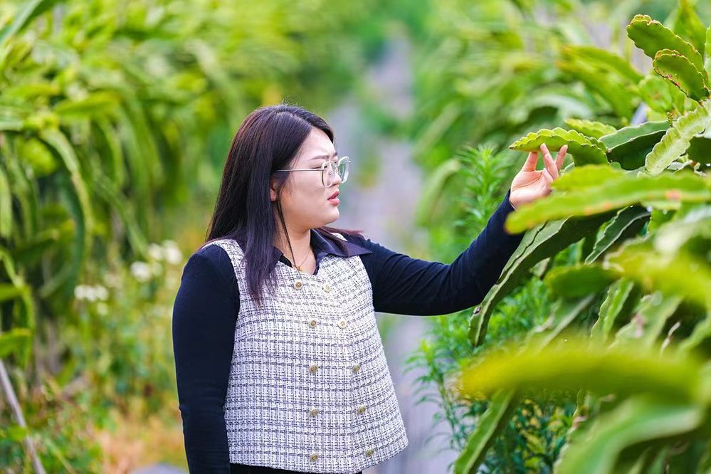 2017年暑假,张兮曼回到家乡石屏县大桥乡,此时正是火龙果成熟的季节,作为火龙果的盛产地,大桥乡有2万余亩的火龙果,由于没有畅销渠道,在供大于求的情况下火龙果只能被低价收购,农户的收益低危。张兮曼结合在学校就业创业协会里的实践,选择直播带货这一新兴销售模式,开始了直播卖火龙果,她在田间地头支起直播设备,由于互联网客户下单时,果子还在树上,直播成本不高,客户收到的果子是优质且新鲜的,好评如潮,三个月的时间,她带动大桥乡村民卖出了2万余亩的火龙果,个人收益达到10W+。