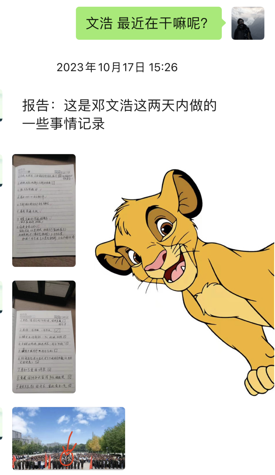 小美老师还记得,文浩自入学第一天起,和她聊起未来发展规划,就坚定自己入伍的决心,并为了这个目标制定了整套规划,对入伍征兵的各项事宜都了解掌握得非常清楚,深知自己的优势和劣势。于是,在社团纳新之时,文浩便加入了“国防后备营”,把每一天都当作役前训练来对待,认真坚持训练,严格要求自己,从未松懈过。