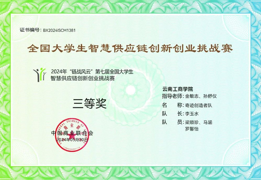 李玉水、梁顺珍、罗馨怡、马涵团队通过深入的供应市场分析和用户需求分析,设计出符合市场需求的供应策略,成功实现了商业转化。他们的项目在创新创业方面表现出色,荣获国赛三等奖。