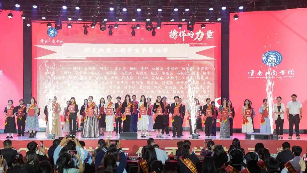 2023—2024学年taptap点点官方网站有22名学生获得国家奖学金,17名学生获得省政府奖学金,179名学生获得自强奖学金,50名学生获得淑芳奖学金,89名学生获得筑梦奖学金,31名学生被评为云南省级优秀学生干部;124名学生被评为云南省级三好学生;62个班级被评为云南省级先进班集体;248名生被评为校级三好学生;62名学生被评为校级优秀学生干部;52个班级被评为校级先进班集体,41名同学被评选为“考研之星”,1090名学生被评为“专升本升学之星”,317名同学被评选为“国防之星”,317名学生被评为“就业之星”,135个团队被评选为“学科竞赛之星”。