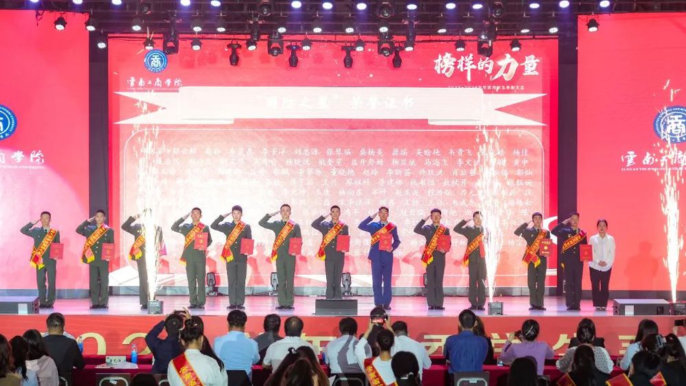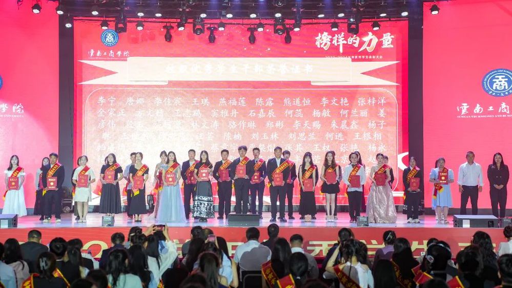 周刚在致辞中表示,荣誉是鼓励,是鞭策,也是前进的动力。大学是立志者的港湾,是奋斗者的乐土。希望同学们抓住机遇、学习榜样、吸取力量、奋进有为,把“自强、卓越、报国”的校训转化为自己的实际行动,做有理想、敢担当、能吃苦、肯奋斗的新时代好青年,在人生的马拉松中跑好云工商这一程,积蓄力量,积极投身全面建设社会主义现代化国家的火热实践中,让青春在祖国最需要的地方绽放绚丽之花。