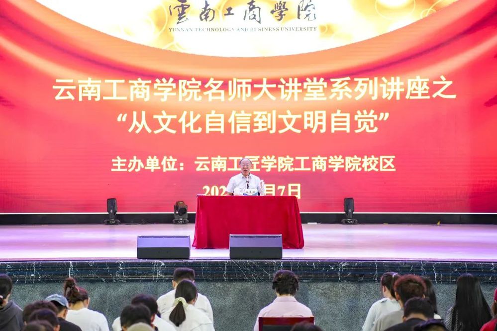 白庚胜教授以习近平文化思想为切入点,结合云南地理环境、经济、社会、文化发展情况,对云南地域文化的起源、发展和渊源作了诠释,讲解了地域文化、民族文化与中国文化的关系,厘清了文明与文化的差异。“连续性、创新性、统一性、包容性、和平性”源远流长的中华文明前景无比光明,他认为,“文化”是集体的,是传承下来的,同时也是物质和精神的结合,对于中国传统文化我们应该有自信,灿烂辉煌的中华文明值得我们推崇,号召同学们坚定文化自信,以实际行动为中华文明的建设添砖加瓦。