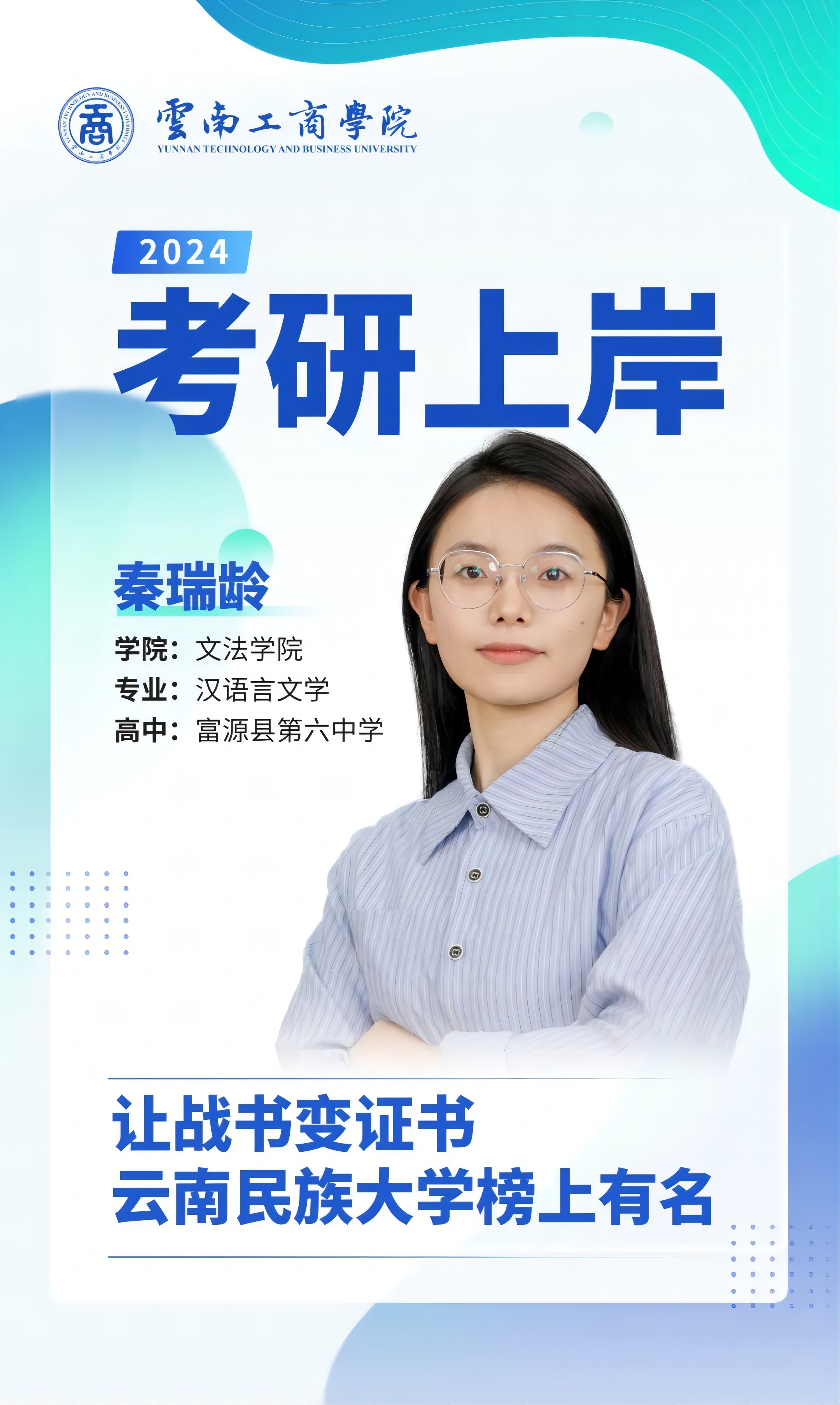 大家好,我是秦瑞龄。高中毕业于富源县第六中学。今年考研上岸云南民族大学,研究方向为司法社会工作。