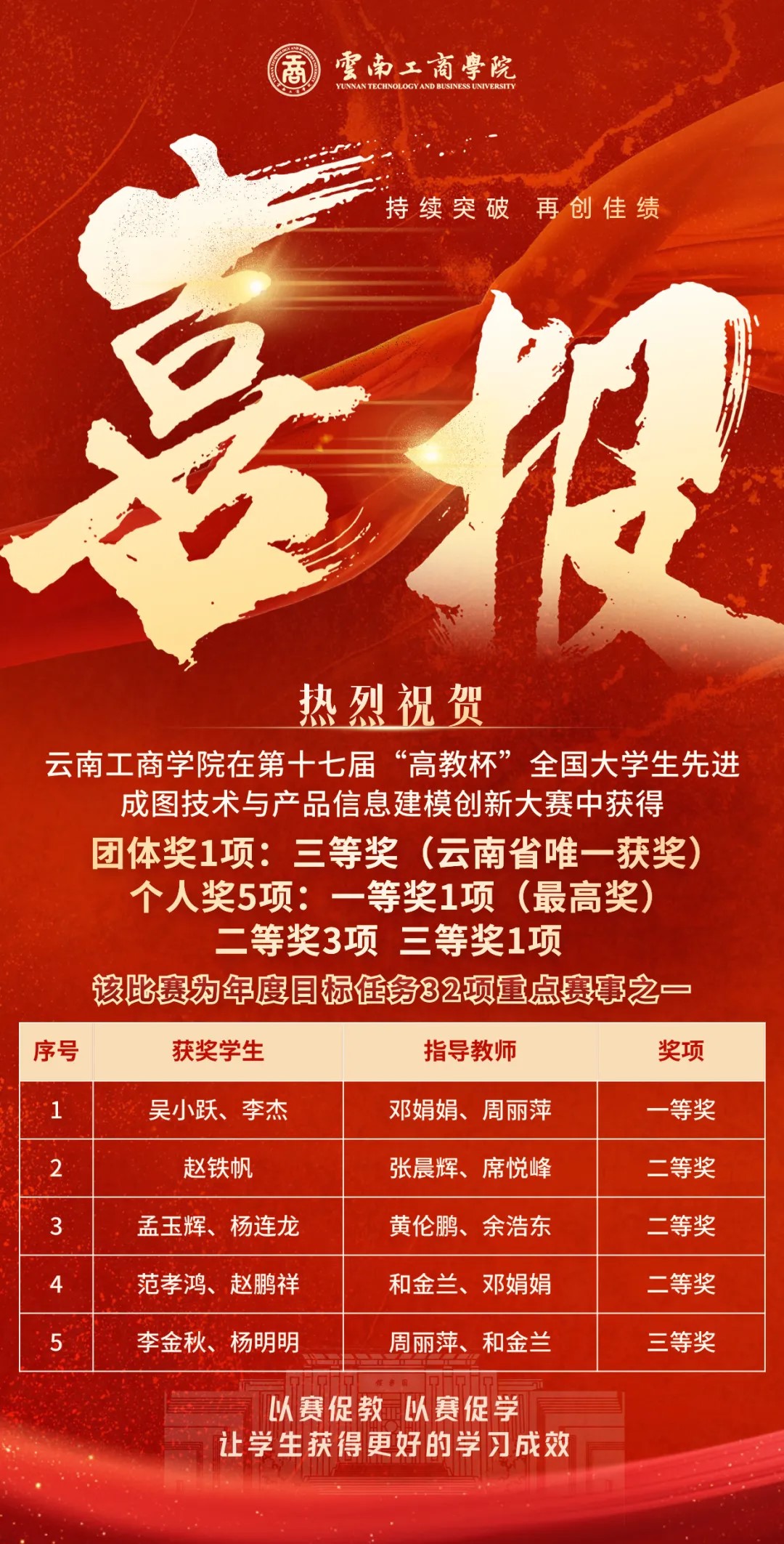 赵铁帆同学说:“比赛对我来说是一个锻炼自我、挑战自我的机会。通过比赛,我进一步巩固了所学知识,发现了自己的不足,有针对性地进行了改进和提升。接下来,我将更加努力学习专业知识,积极参加各类比赛,争取赢得更多荣誉。”