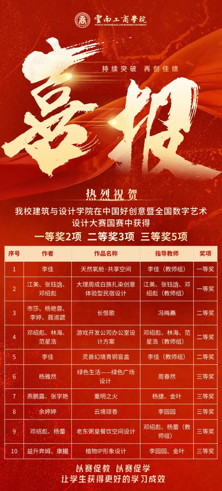 学校高度重视本次大赛,自接到大赛通知起,第一时间在校内启动赛事宣讲,组织专业培训。通过校内选拔赛,从众多参赛作品中精心评选出具优秀创造表现力的作品代表学校参赛。此次获奖既彰显了学校在设计领域的专业实力,也体现出学生卓越的创新能力和实践技能。