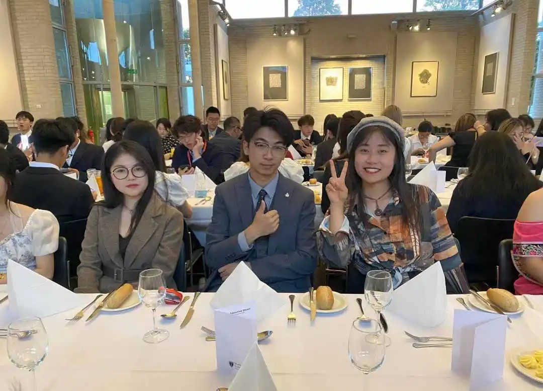 在灯光摇曳中,同学们身着正装,共赴剑桥研学的道别晚宴。在美食与礼仪交织中,在研学步入尾声之际,同学们欢乐回忆这一段收获颇丰的研学之旅,为彼此取得的成绩和收获的友谊干杯。