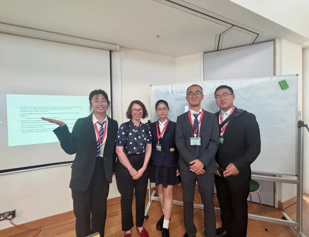 初入剑桥,同学们仿佛置身于一幅精致的中世纪画卷之中,入住剑桥大学的学生公寓后,一次全新的智慧洗礼正式开启!剑桥研学第一课,从哲学教授Prof. Anna Alexandrova带来的课程《社会科学哲学》开启,通过精妙的讲解,同学们穿过理论的迷雾,剖析经济背后的心理逻辑,在精心设计的互动讨论环节,大家运用所学所感,尝试批判性思维提出新的见解,激发对理性与非理性决策边界的思考。