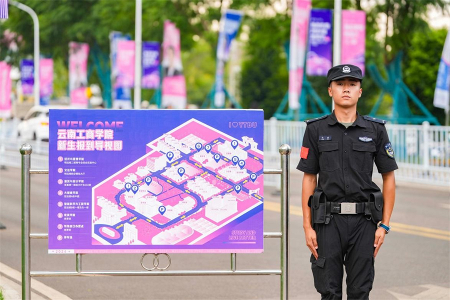 校园内各个服务点随处可见志愿者的身影,他们来来回回搬运行李,全程陪伴新生完成报到流程,并带领大家游览校园,以便新生能够迅速融入。同时,保卫处和后勤部门的工作人员也全力以赴,为新生和家长的顺利报到提供坚实的保障。