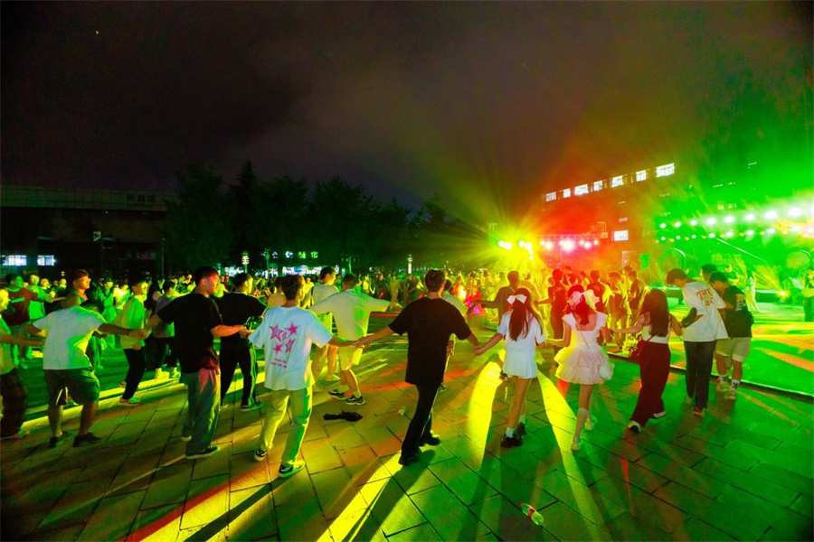 校园沐浴在热烈浪漫的粉蓝色迎新氛围中。道旗帜上的考研上岸榜样、优秀学子、优秀教师榜样等激励新生与良师益友同行。各类洋溢着青春气息的展板、条幅、玫瑰花瀑布、打卡点等吸引了同学们的目光,大家纷纷拍照留念。同时,迎新日全天还有社团才艺展示、云南特色“打跳”等活动,让新生们感受到了校园文化的无限可能。