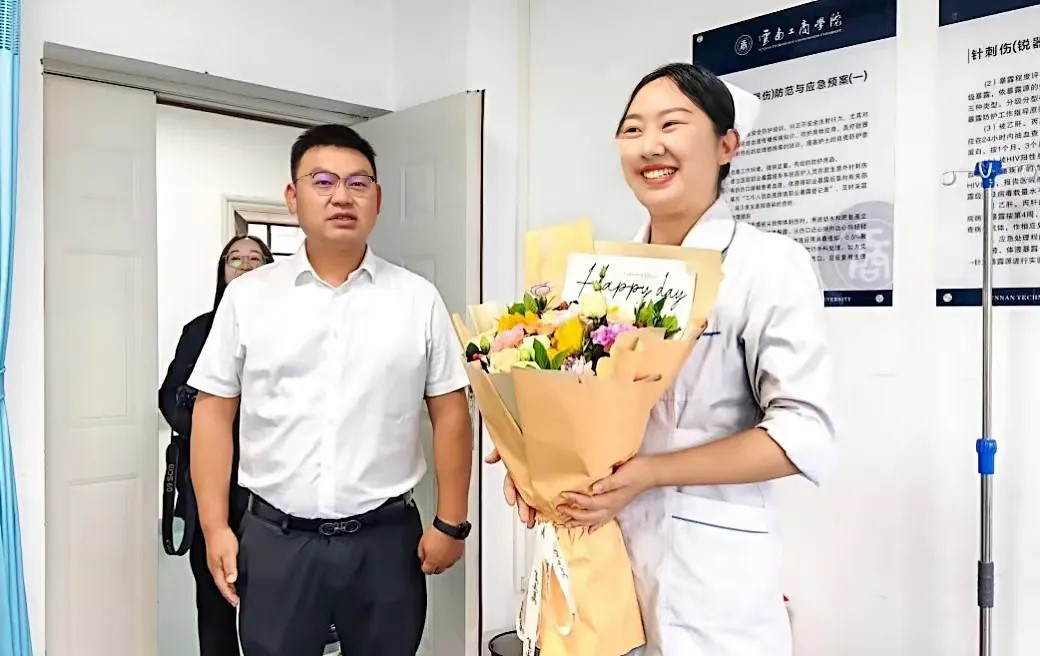 教师节一早,党委书记李国琼、校长蒋永文等学校领导就走进课堂,为老师们献上鲜花,把最真挚的敬意和最暖心的祝福装进明媚的橙黄花束中,感谢老师们的辛苦耕耘和付出。