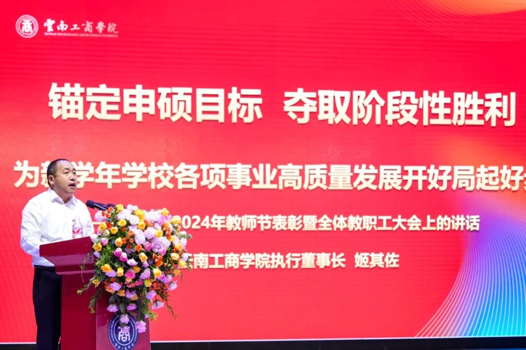 他强调,广大教职工要将让每一位学生获得职业成就和人生幸福作为崇高使命,继续秉持“最以学生为中心”的教育理念,持续发扬云工商人不惧困难、迎难而上、敢于担当的敬业奉献精神,持续加强政治历练、实践锻炼、专业训练,无惧风雨、挺膺担当,锻造过硬本领,为达成学校“申硕更大”高质量发展的宏伟办学目标而奋斗。