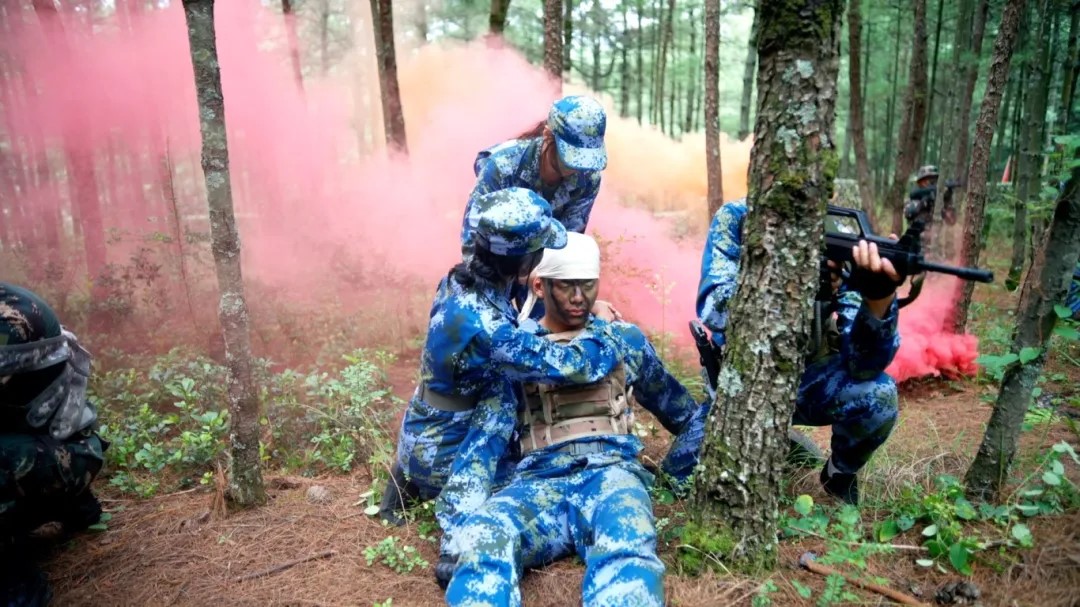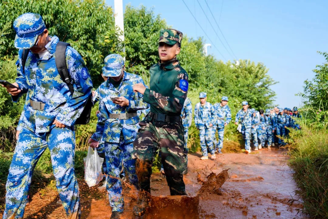 一路上,师生们在总指挥组的安排下,在校领导、教官队和教师代表的带领下,沿途开展防化演练、穿越毒区、口令传达、唱军歌等活动。战术小队进行了泥塘战术、抢滩登陆、山林地搜索、战场救护、野外生存等训练。鼓舞士气组,进行了歌唱、群舞等丰富多彩的节目表演,成为拉练途中一道靓丽的风景线。