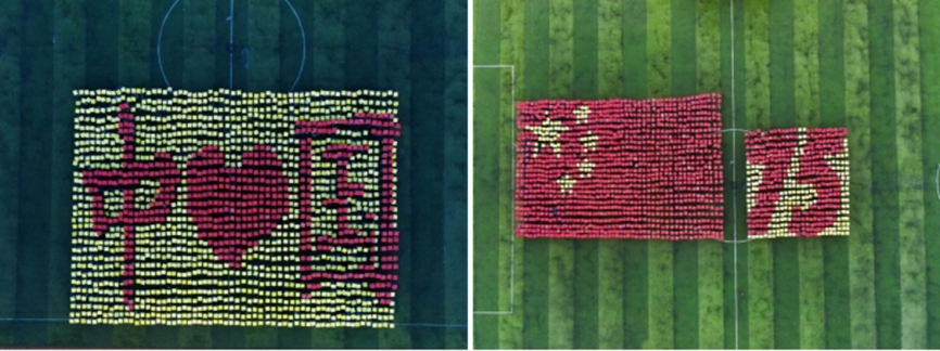 1800名学子以身体为画笔,共同绘制出一幅幅充满深意的图案,在壮美的画面中,他们用行动展现出,对祖国的拳拳之心,诉说对祖国的无限热爱。