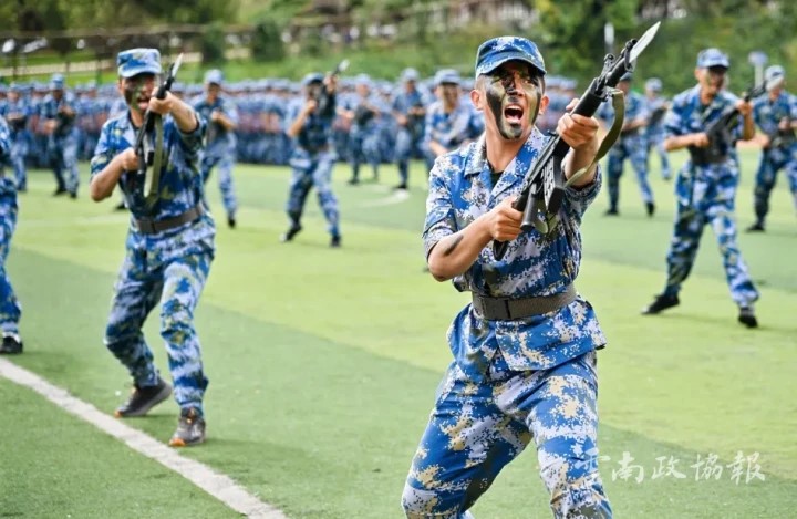 活动在庄严的国歌声中拉开帷幕。分列式开始,党旗、国旗、团旗、校旗引领前进的方向,2024级新生以9个营64个连,7个分列式方阵整齐列队。他们迈着整齐划一的步伐,喊着高昂响亮的口号,自信果敢、英姿勃发,有序通过主席台接受检阅,21天的磨炼在此刻交上优异的答卷。