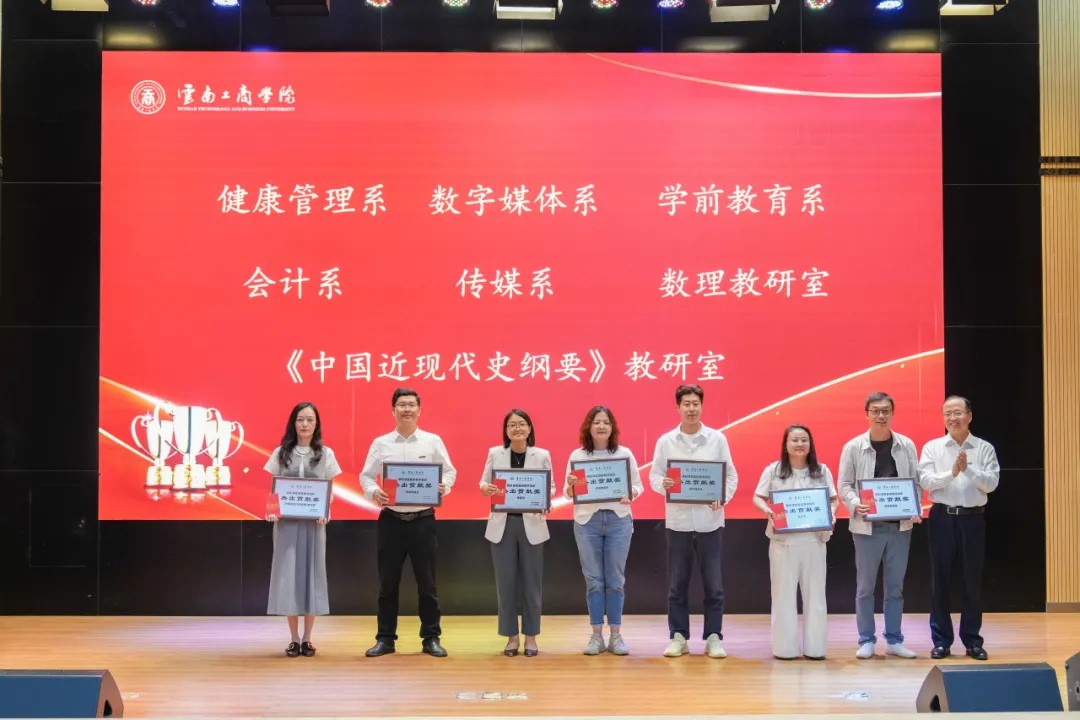 基层教学组织杰出贡献奖代表汤雁发言, “我们坚守教育一线,用汗水和智慧助力学生成长。每堂课的质量影响学生未来,每次辅导都承载责任。我们不断创新教学方法和手段,让课堂生动有趣,学习高效便捷。”