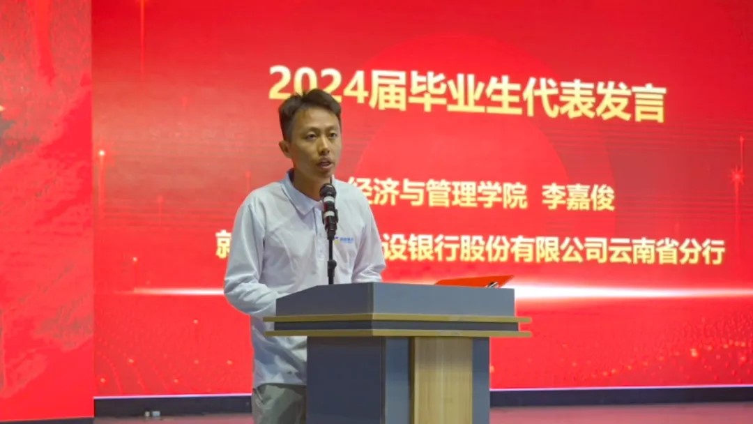 动员大会现场,学校高质量就业毕业生代表上台发言,分享就业心得与经验。2024届毕业生李嘉俊目前就职于中国建设银行股份有限公司云南省分行,他现场分享了自己在毕业季面临就业时的心路历程,与现场的毕业生感同身受。他说:“运气偏爱有心人,它只会留意那些有准备的人。”鼓励毕业生积极就业,到工作岗位中去持续学习,提升技能,不断提升自己的就业竞争力。