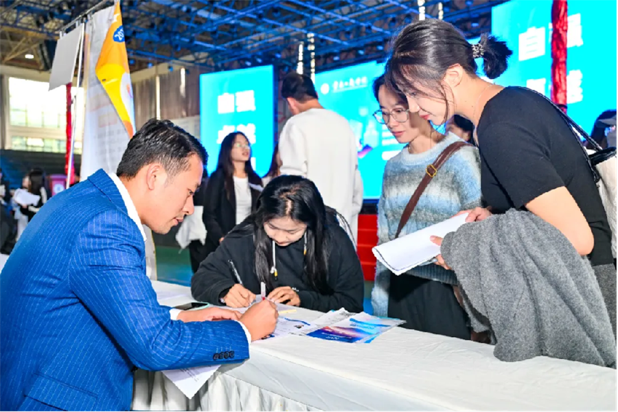 招聘会现场气氛热烈,同学们在政策宣传咨询服务台、企业招聘区、企业展示区等区域,积极咨询相关专业人员,现场进行岗位匹配。部分企业开展了现场宣讲会,企业工作人员详细地为同学们介绍企业整体情况、对招聘岗位的要求等进行讲解,同学们在充分了解企业用人需求后结合自己的职业规划进行简历投递,招聘会现场初步达成就业意向5036人次。