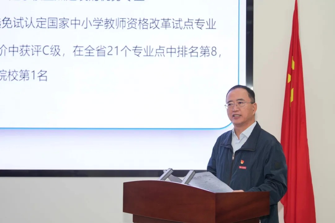校长蒋永文从学校概况介绍、以评促建推动学校高质量发展、学科建设及教师队伍结构优化提升等方面对本次专业认证总体情况进行报告。他提到,师范类专业认证对强化教育使命意识,提高教师培养质量具有重要的推动作用。学校将把本次认证作为促进发展的契机,深入学习贯彻习近平总书记关于教育的重要论述,推进实施教育部普通高等学校师范类专业认证实施办法,坚持以学生为中心,坚持以评促建、以评促改、以评促强,推进内涵建设,全面保障和提升师范类专业人才培养质量,为建设教育强国、教育强省发挥应有的作用作出新的贡献。