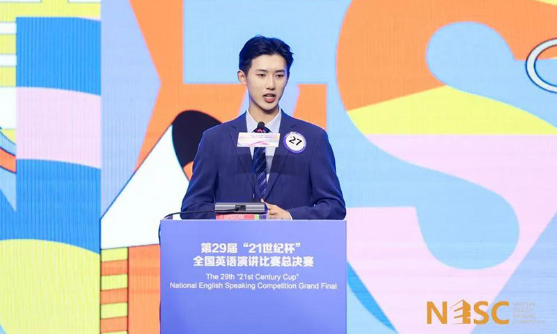 张勇同学说:“首先,非常感谢学校和老师们的帮助和支持,让我有机会和来自全国各地的顶尖选手沟通交流。我在这次比赛中获益良多,结识了很多优秀的同辈,也认识到成长的距离,对目标有了更清晰的规划。演讲不仅仅是一种表达,更是一种传递力量与情感的方式。通过这次比赛,我深刻体会到了语言的力量,也更加坚定了要用演讲去传递正能量的决心。我将把这份荣誉作为新的起点,继续前行,在演讲的道路上不断探索、不断超越。”