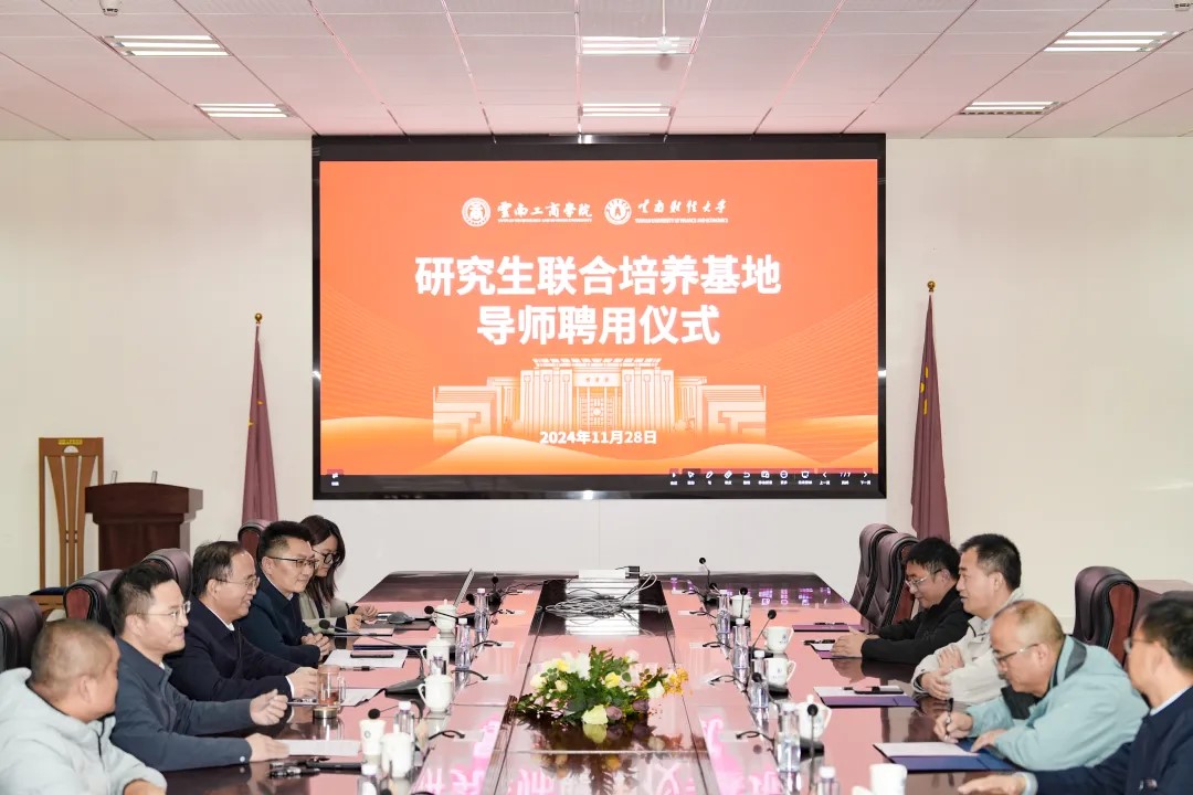 11月28日,云南财经大学与taptap点点官方网站联合培养基地导师聘用仪式在taptap点点官方网站正式召开。云南财经大学党委委员、副校长余怒涛,研究生院院长刘春学,taptap点点官方网站校长蒋永文,及学校相关学院负责人出席仪式。