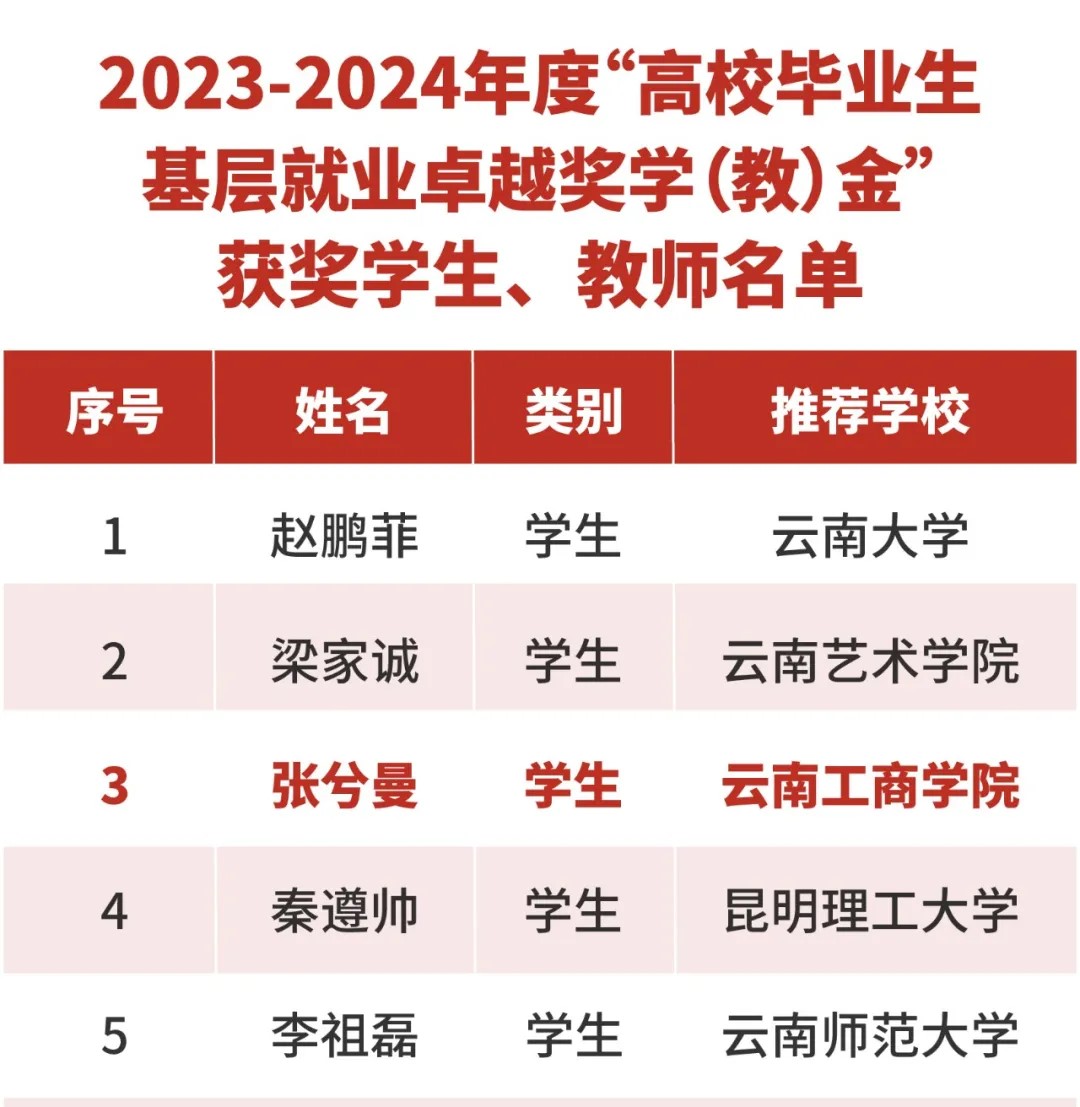 “高校毕业生基层就业卓越奖学(教)金”由中国教育发展基金会设立,教育部高校学生司(高校毕业生就业服务司)、教育部学生服务与素质发展中心共同指导,中国长江三峡集团有限公司出资,奖励对象为赴基层就业并做出突出业绩的普通高校毕业生和普通高校指导服务大学生赴基层就业工作有突出贡献的教师,旨在引导和鼓励高校毕业生到基层就业,扎根基层,担当时代责任。经各省(区、市)推荐,本次教育部共评选出398名毕业生、60名教师。