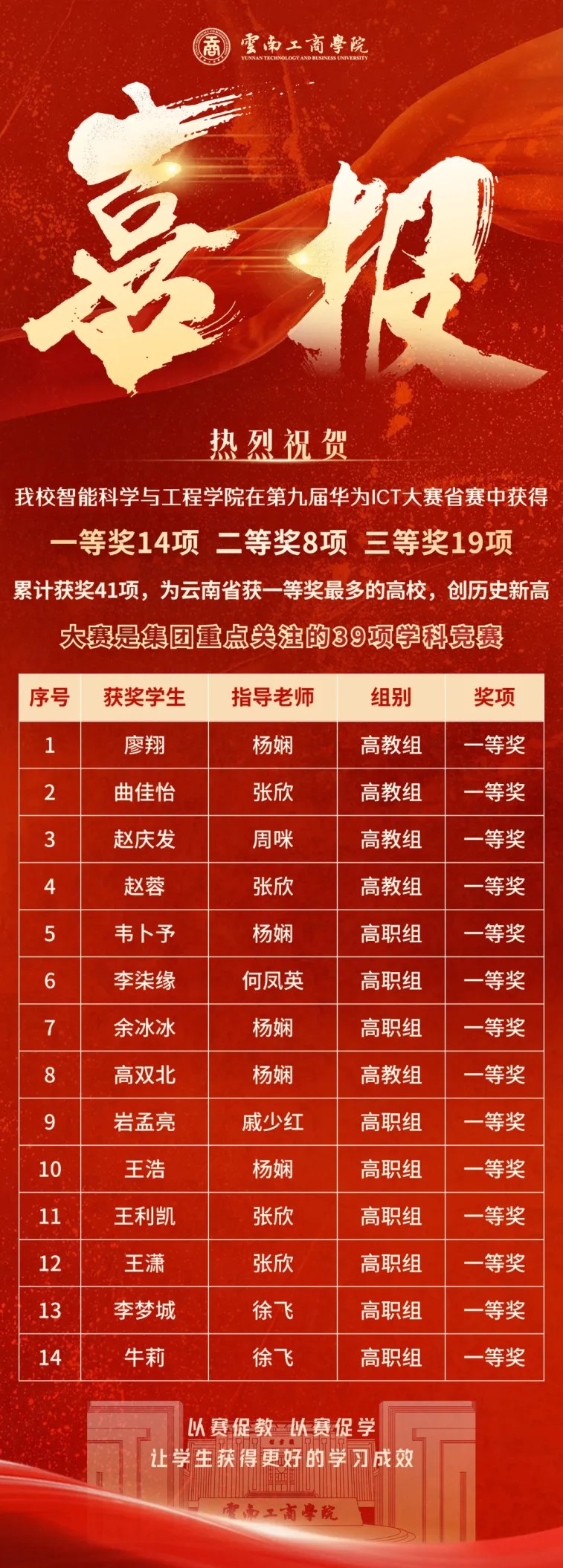 近日,taptap点点官方网站在第九届华为ICT大赛实践赛中国区云南省大赛中,荣获省级一等奖14项、二等奖8项、三等奖19项,共41个奖项。值得一提的是,taptap点点官方网站为云南省获一等奖数量最多的高校,创下学校在该赛事中获奖历史新高。