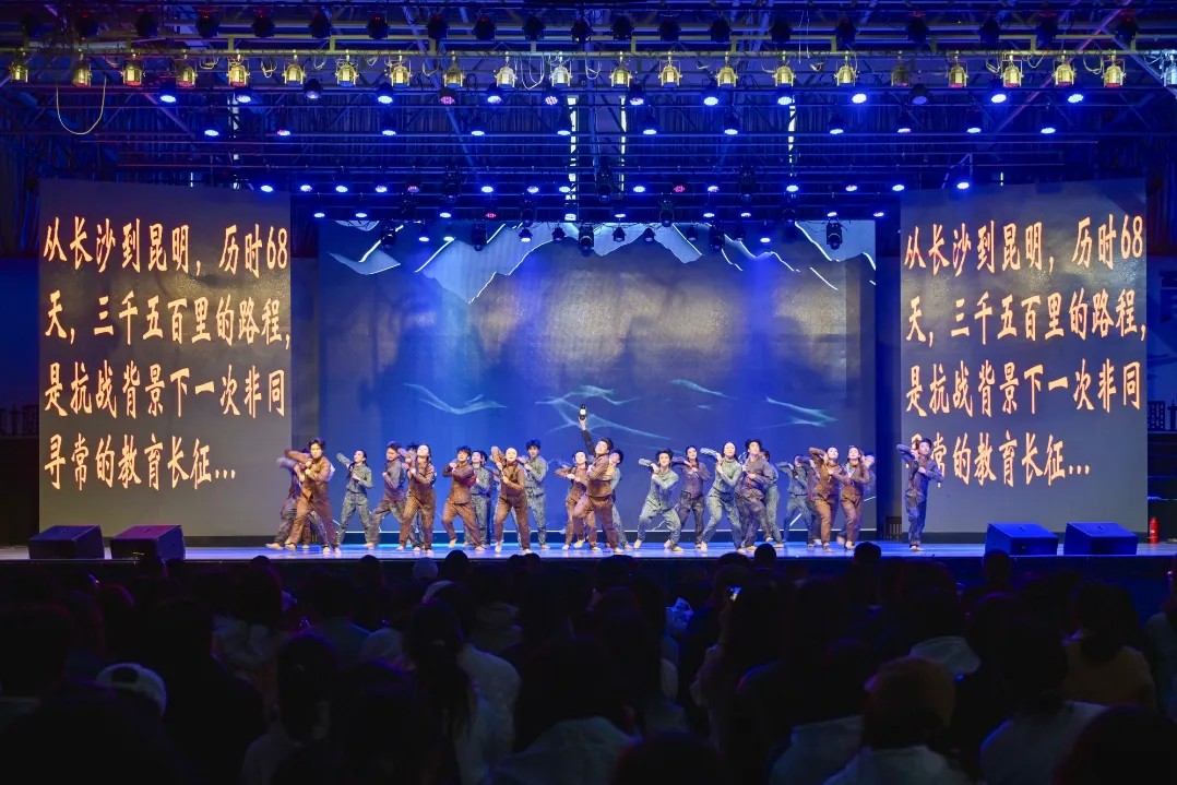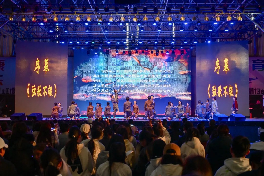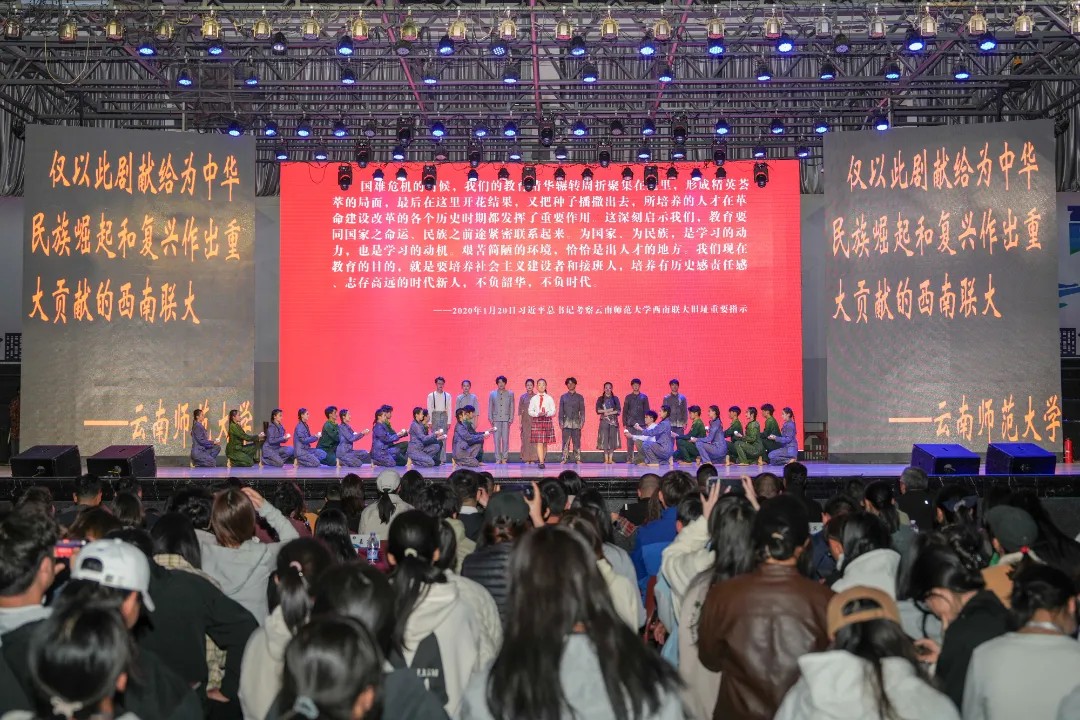音乐舞蹈史诗《西南联大》是云南师范大学师生以西南联合大学在抗日战争时期的历史为背景创作排演的,该剧目通过音乐、舞蹈、朗诵等多种艺术形式,生动地展现了西南联大师生在战火纷飞的年代坚守学术、追求真理的感人故事。剧目由云南师范大学艺术类专业教师、在校学生和优秀校友100余人组成演职团队。