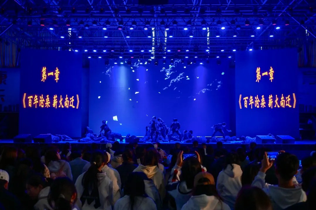 舞台上,激昂的音乐、优美的舞蹈、深情的朗诵交织在一起,演员们用精湛的表演和充满激情的演绎,将那段波澜壮阔的历史重现于观众眼前。