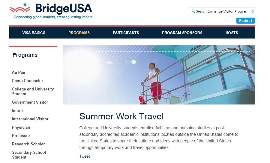 大学生暑期赴美带薪实习/社会实践项目(Summer Work & Travel USA )是基于美国政府于1948年通过的信息及教育交流法案(Smith-Mundt Act),此法案于1961年被纳入并扩展为教育及文化平等交流法案(Fulbright-Hayes Act)。项目在中国推广之前,已经在欧洲、美洲及亚洲其他国家和地区成功运作了五十余年,每年都有数万名大学生利用他们的暑假,持J-1签证进入美国企业进行为期8~12周的带薪实习。学生还可利用实习之余,在美国境内旅游或实地体验美国生活,了解美国风土人情,给予学生一个全面提高自身综合能力的锻炼机会,提高口语能力,增强就业优势,为未来增光添彩。