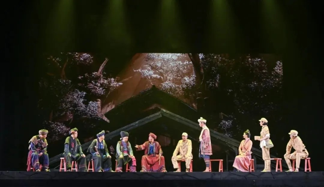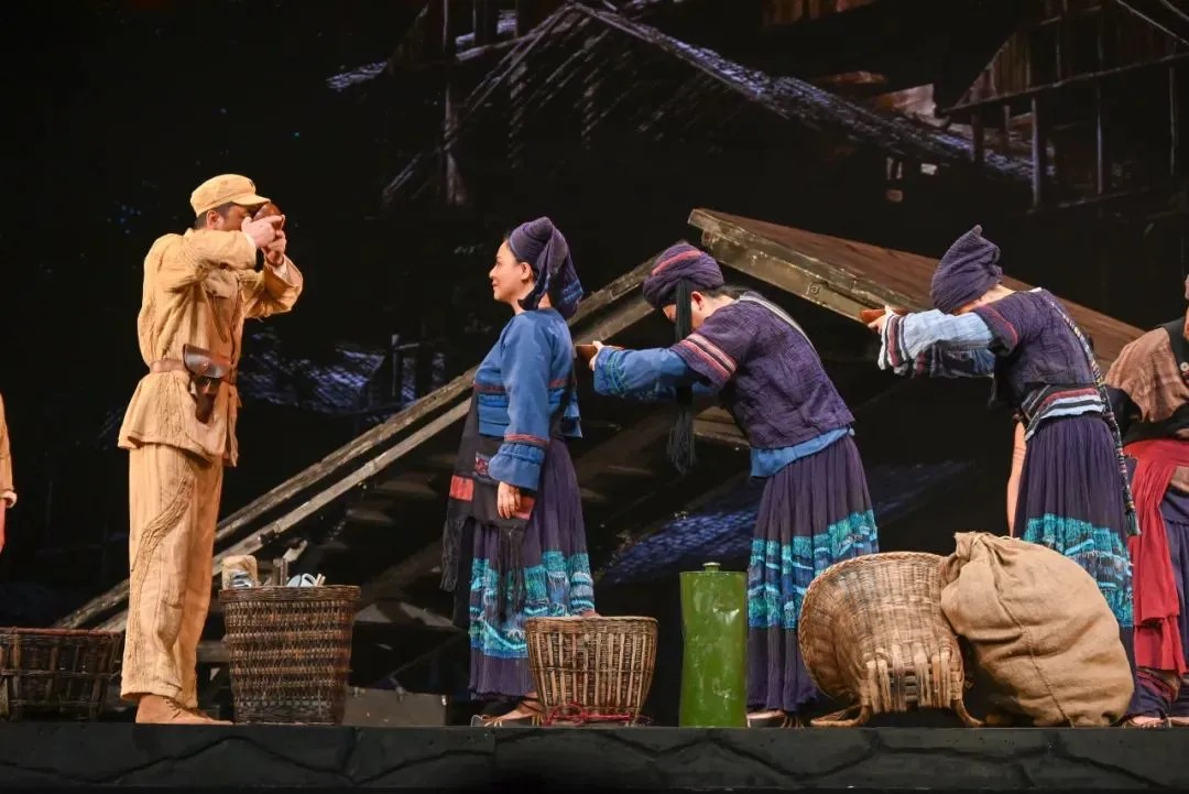 话剧舞台上,各族头人在澜沧江畔立下“民族团结誓词碑”的历史瞬间被精准还原。在那段艰难困苦、战火纷飞的岁月里,边疆各民族历经无数考验,最终毅然选择“团结一心跟共产党走”。新中国成立初期,这块凝聚着各民族坚定信念的“民族团结誓词碑”,为边疆民族地区的团结进步与繁荣发展翻开了崭新篇章。