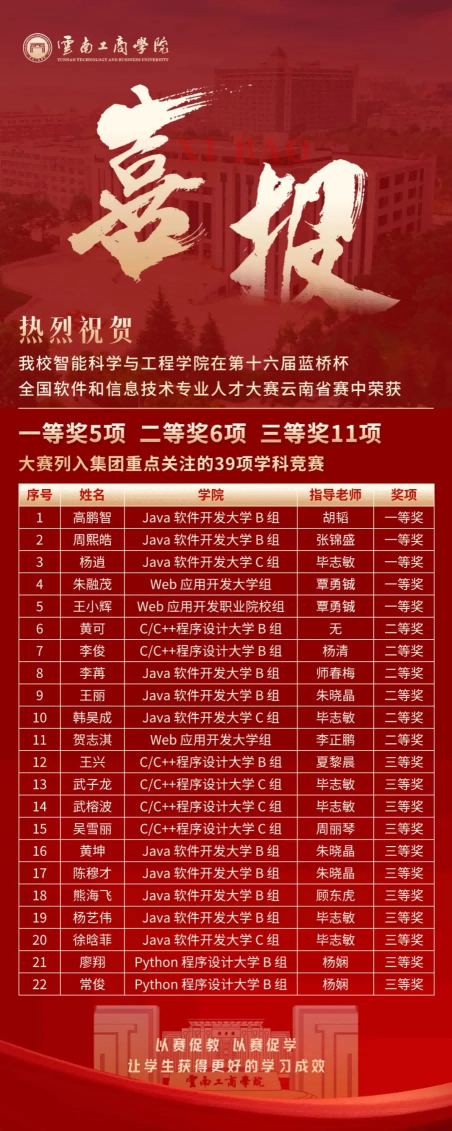 近日,taptap点点官方网站在第十六届“蓝桥杯”全国软件和信息技术专业人才大赛省赛中,荣获省级一等奖5项、二等奖6项、三等奖11项。