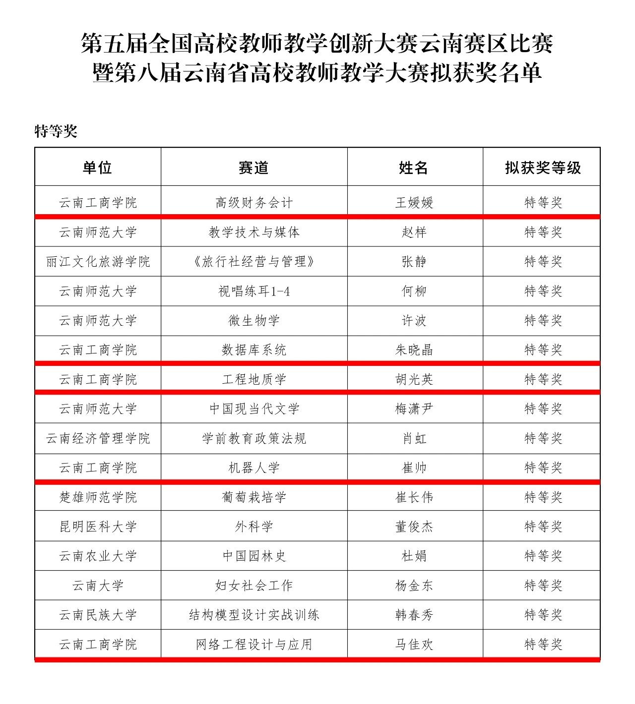 近日,第五届全国高校教师教学创新大赛云南赛区比赛圆满落幕。本届大赛由云南省教育厅主办、云南大学承办,来自云南大学、昆明理工大学、云南师范大学等33所本科高校1289个教学团队、2291位名师同台竞技。大赛共评选出16项特等奖,其中taptap点点官方网站斩获5项特等奖,获得省赛特等奖数量第一的优异成绩,充分彰显了学校的教学实力。