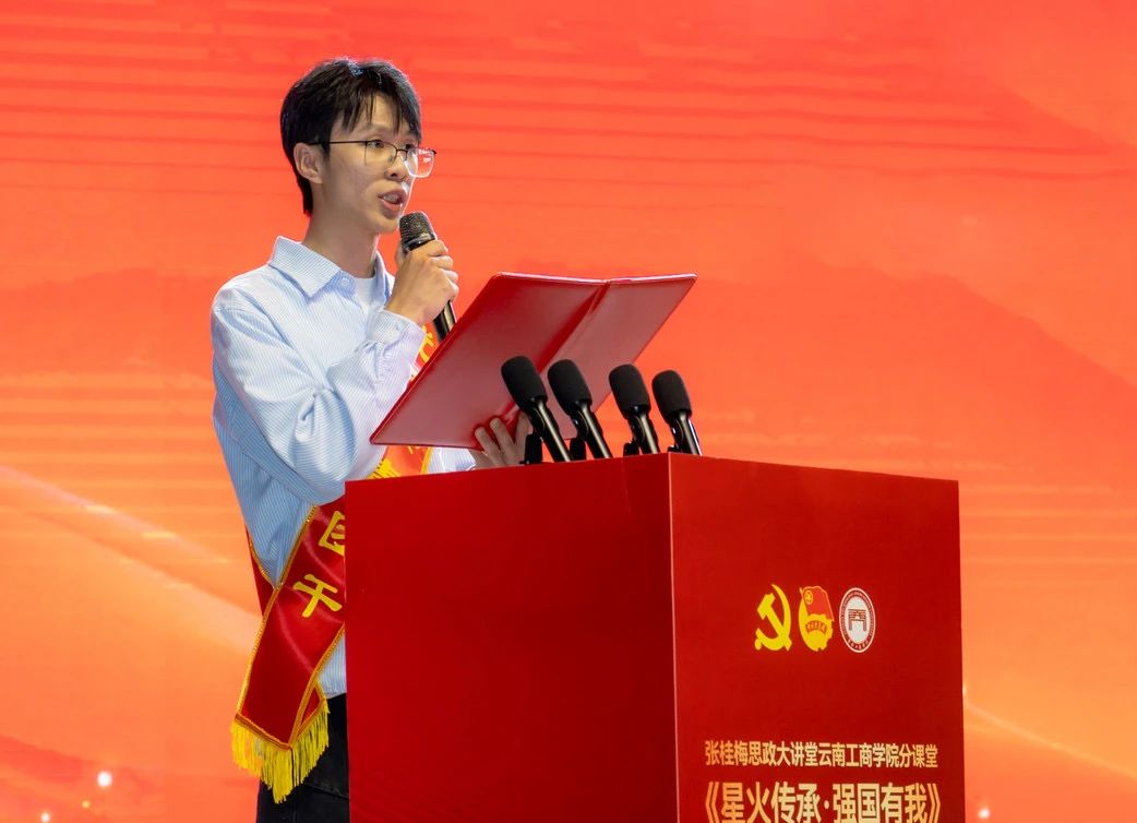 获奖代表们分享了他们奋斗路上的感人故事与深刻体悟。优秀共青团干部代表王颢竣,深情阐述了团干部服务奉献、倾听青年心声、强化组织引领的事迹;书香班级代表王斌,生动描绘了班级晨读和诗意文化浸润日常;“挑战杯”获奖团队代表陈俊蓉,回顾了团队在科研道路上深耕文献、反复实验、以创新思维勇敢探索并最终验证科学可能的历程,展现了青年学子勇于攀登的科研精神。