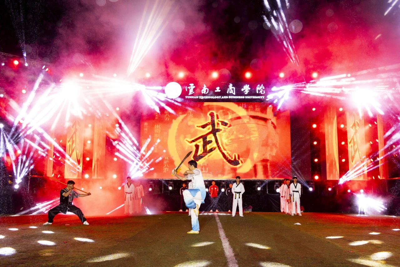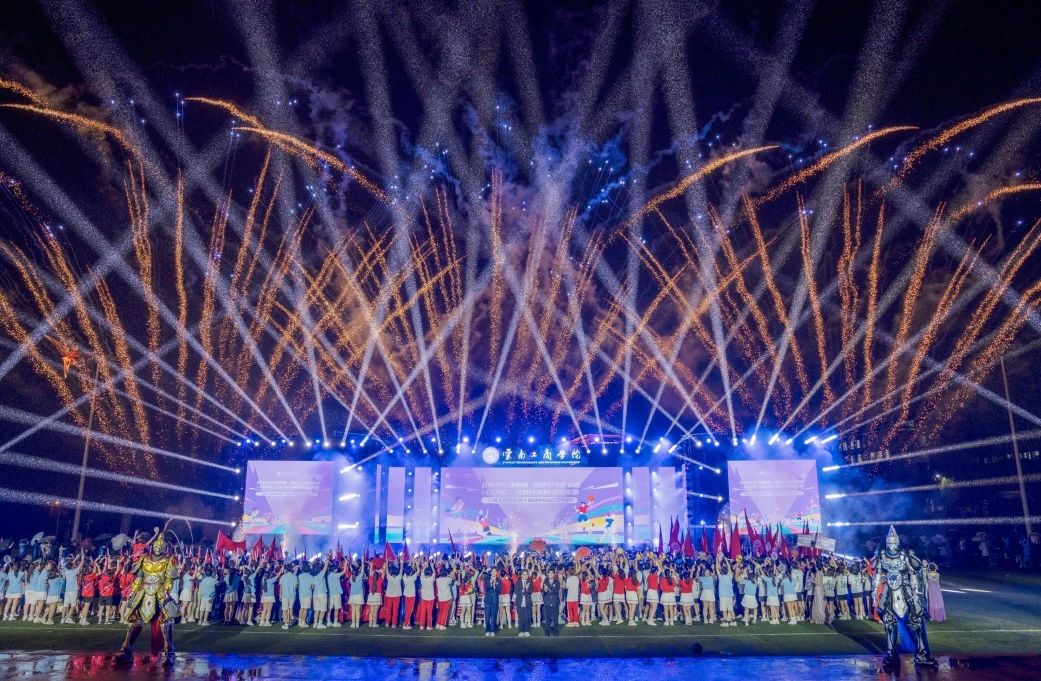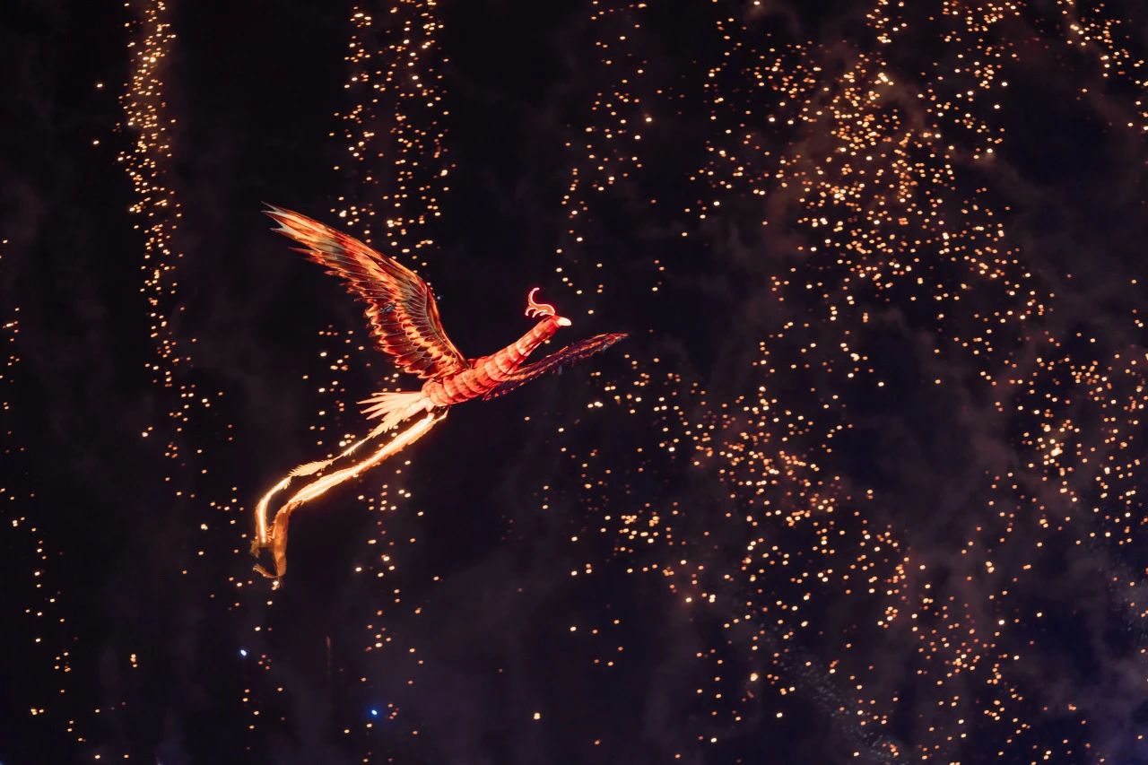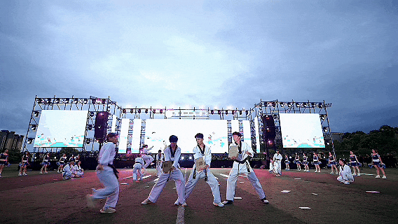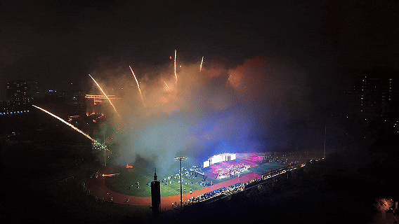 这场属于青春与拼搏的盛会正式开启,刹那间,寓意吉祥与腾飞的“龙凤呈祥”飞天表演直冲云霄,震撼寰宇的烟花秀,点燃了整个初夏的夜空!