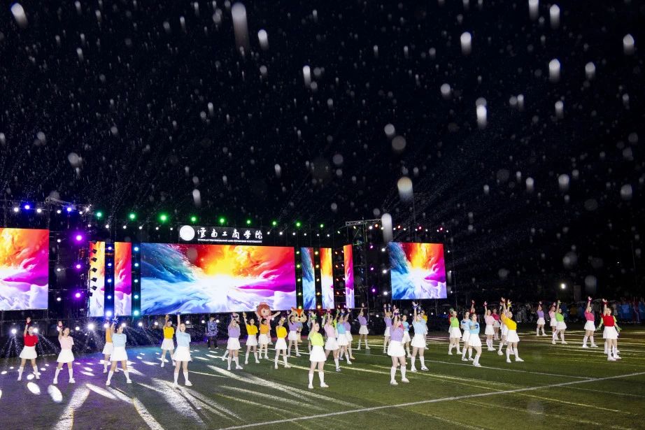 万千火树银花在墨色天幕轰然绽放!金色瀑布倾泻而下,七彩星雨漫天泼洒,雷鸣般的巨响在胸膛炸裂!一簇簇、一层层,流光如瀑,星河倒泻,将整个校园照耀得亮如白昼!璀璨的光焰在每一张仰望的青春脸庞上跳跃,梦想在此刻被这无与伦比的绚烂彻底点燃、腾空而起!