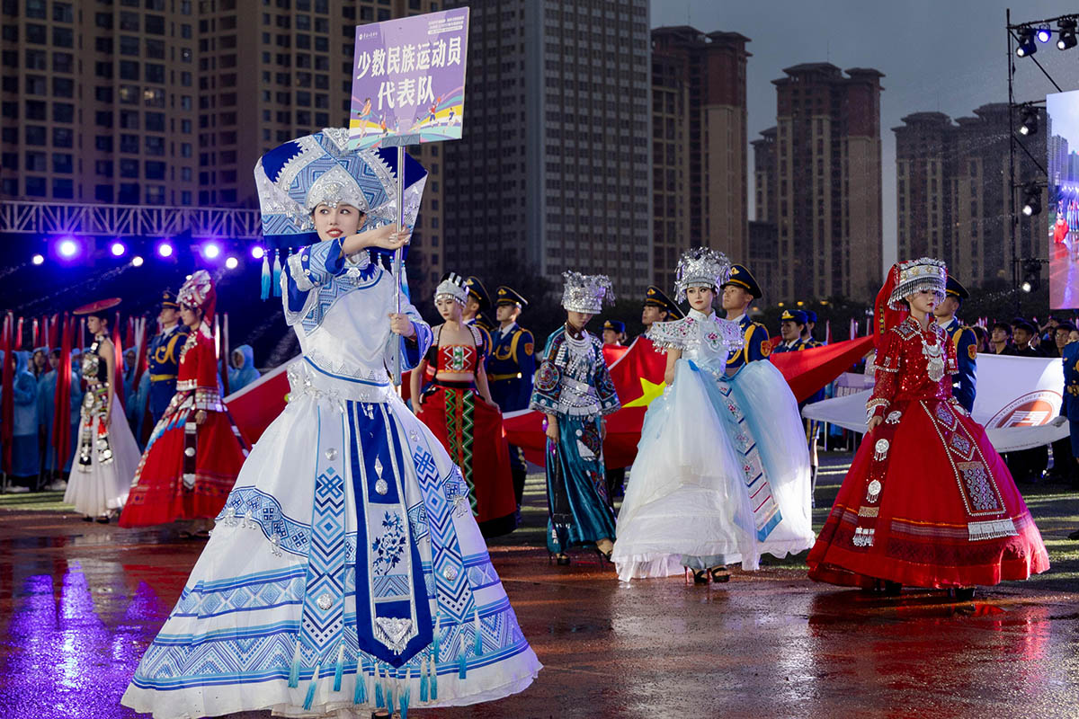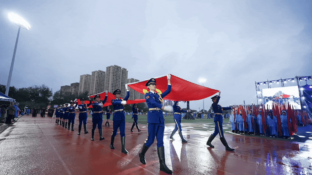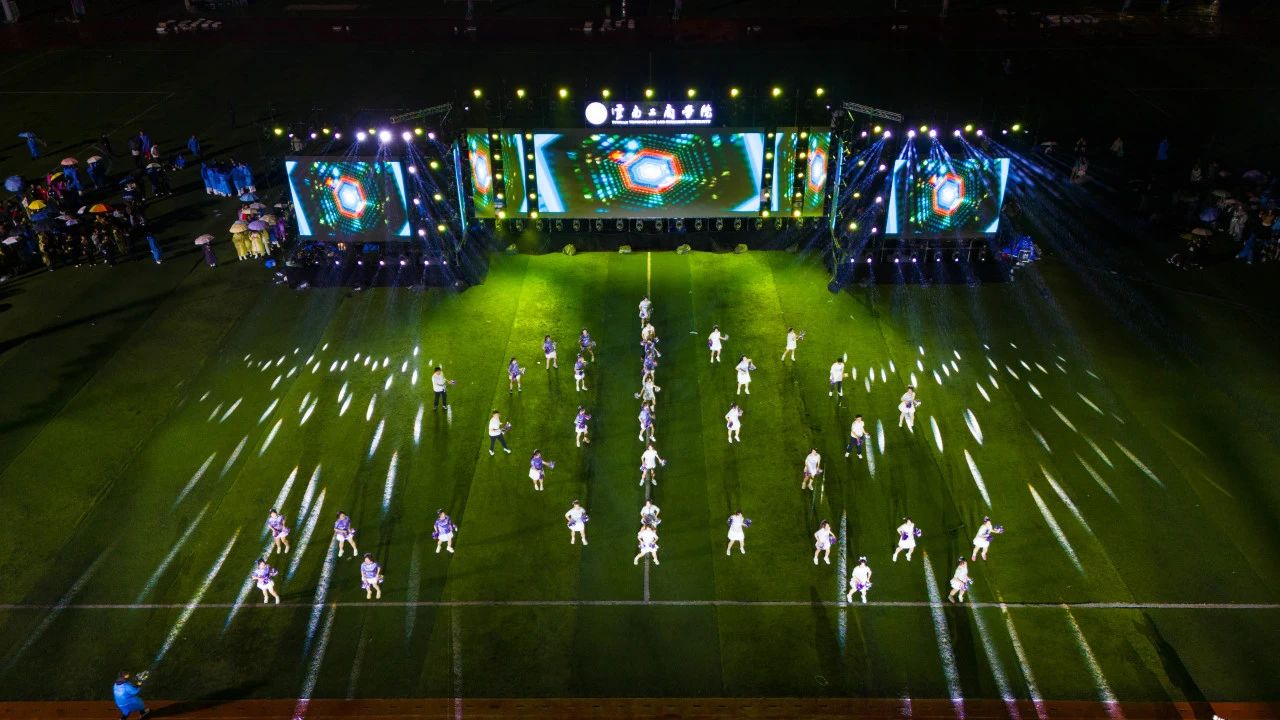 暮春初夏,晚风微凉,田径场上,青春滚烫。国旗护卫队步履铿锵,裁判员方阵紧随其后,民族队方阵身着盛装,宛如从历史长河走来的文化使者,尽显多元魅力。科技感爆棚的春晚同款机器人惊喜登场,算法与体育在此刻碰撞出未来火花!