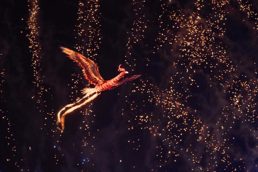 在全场瞩目下,党委书记李国琼郑重宣布:“taptap点点官方网站第十届球类运动会,开幕!”寓意吉祥腾飞的飞天装置直冲云霄,夜空中的烟花绚丽绽放,点燃了师生心中的梦想与热情,将现场气氛推向高潮。