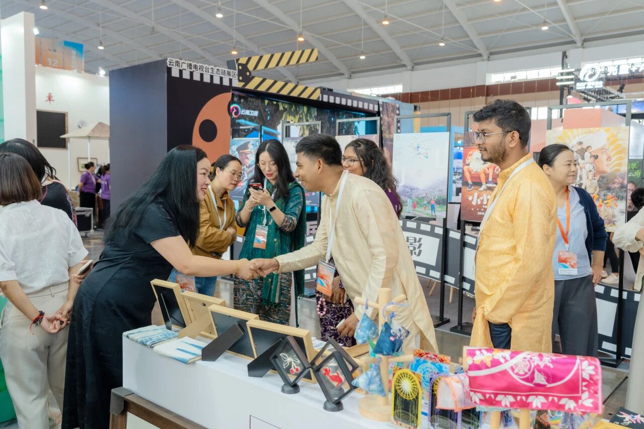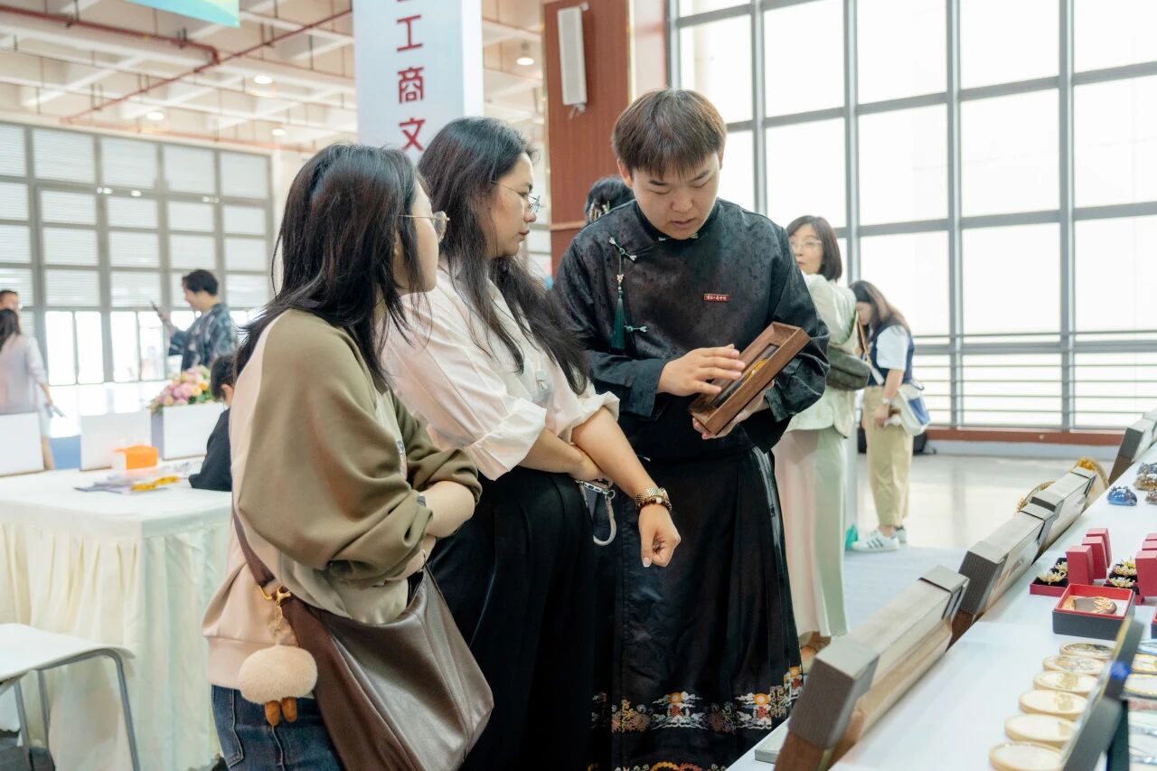 展会期间,北京大学文创团队来到云工商展位,与学校师生就文创产品的设计理念与运营模式进行深入交流。北大带队教师称赞云工商文创作品“将云南民族文化与现代设计巧妙结合”,认为这种创新实践为传统文化注入了新的活力。学校“翠羽银丝”工作室学生杜召豪分享了他的参展体验:“能以参展商的身份站在文博会的舞台上,我感到特别自豪!通过这次参展,我真正体会到了‘做中学’的魅力,也更加理解学校‘产教融合’人才培养模式的良苦用心。”