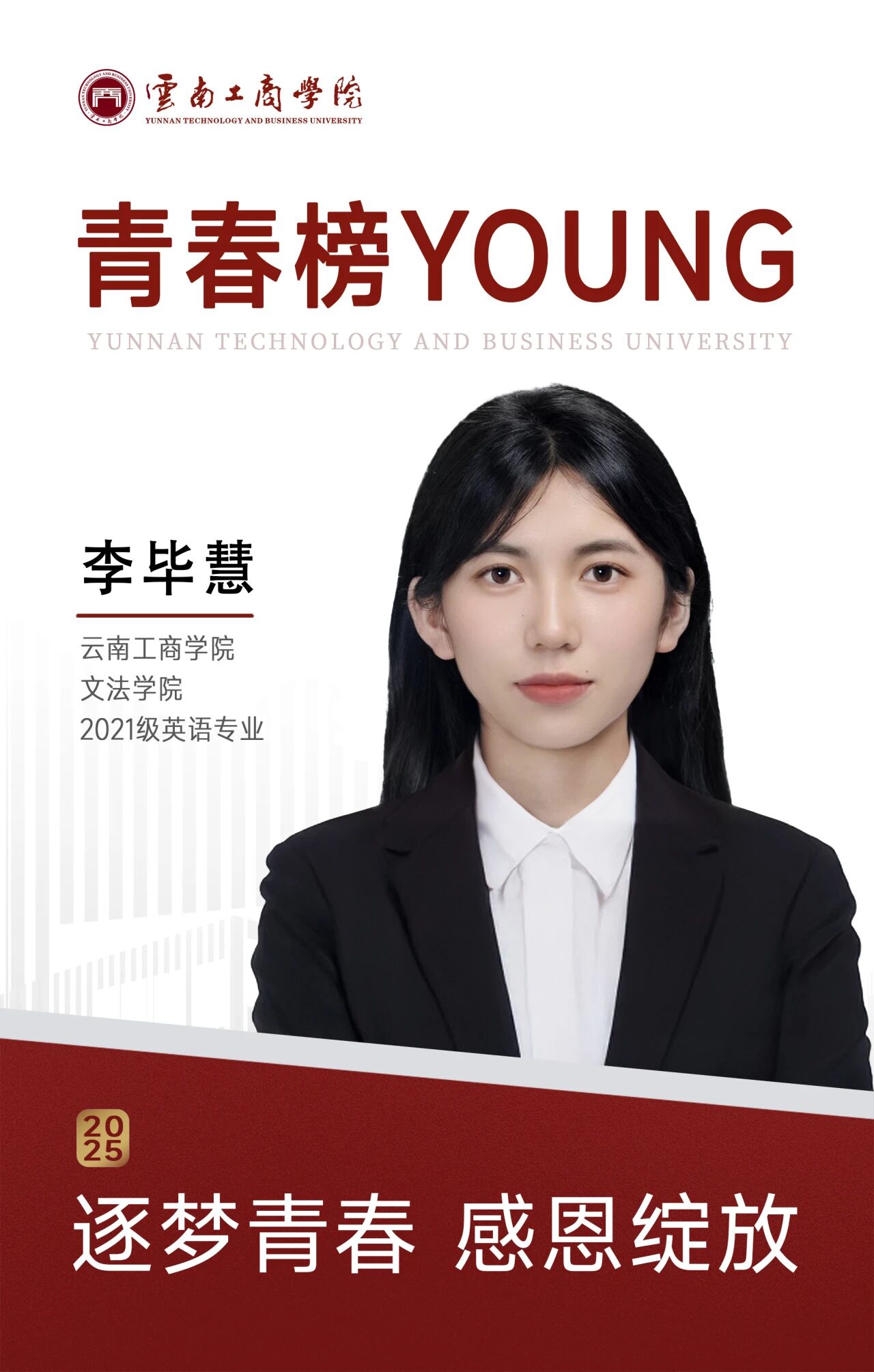 大家好,我是李毕慧,来自云南临沧,高中毕业于临沧市凤庆县第三完全中学。大学期间曾多次在全国大学生英语竞赛中荣获国家级奖项,连续两年荣获国家励志奖学金;在参与多项志愿服务活动中获评优秀志愿者、最佳贡献奖等称号。现入职临沧市凤庆县诗礼乡诗礼中心学校,担任英语教师。