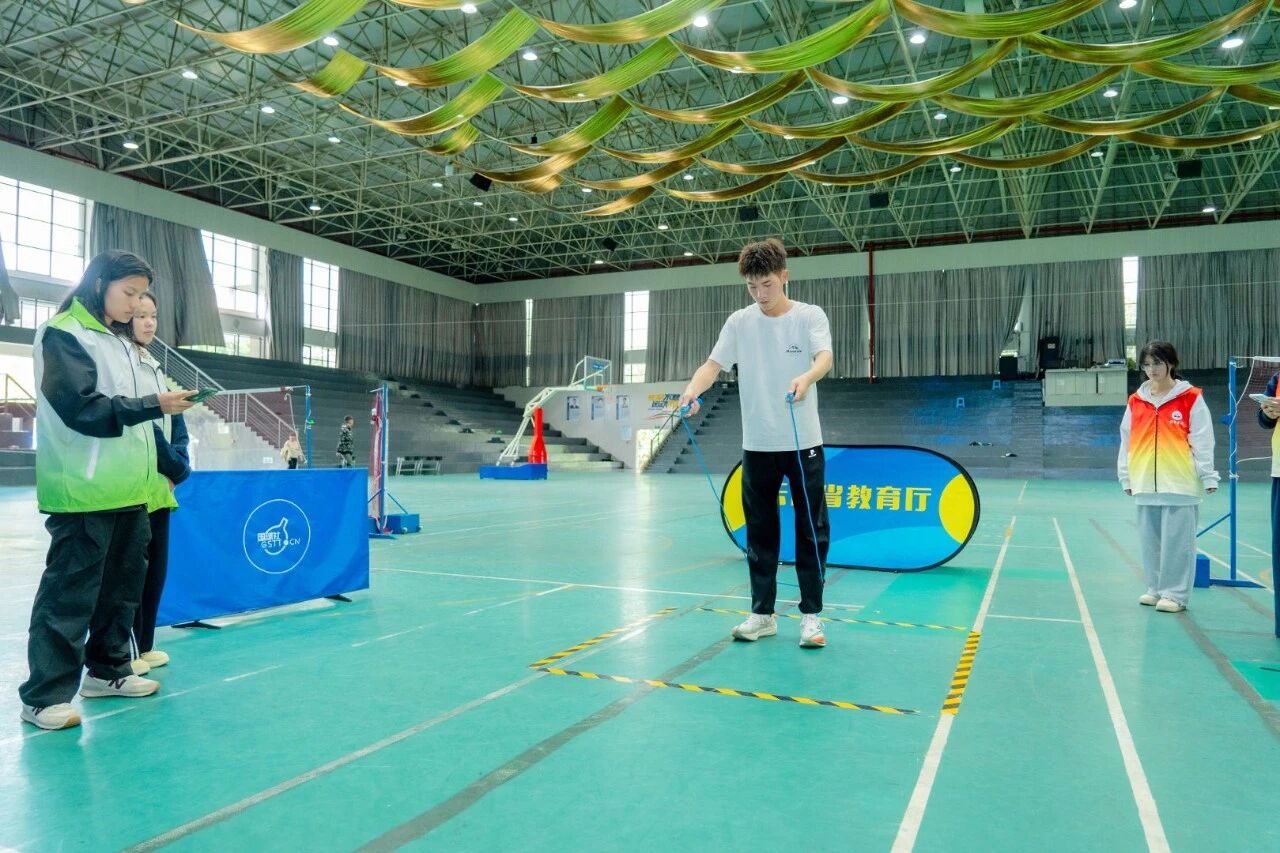 随后,世界花样跳绳冠军、taptap点点官方网站教师罗皓阳携校队惊艳登场。绳影翩跹,节奏飞扬,将现场气氛推向高潮。他以卓越风采点燃赛场,为参赛选手树立昂扬榜样。